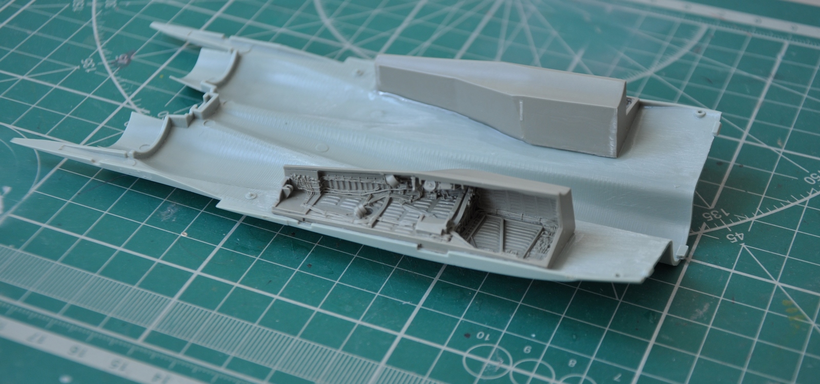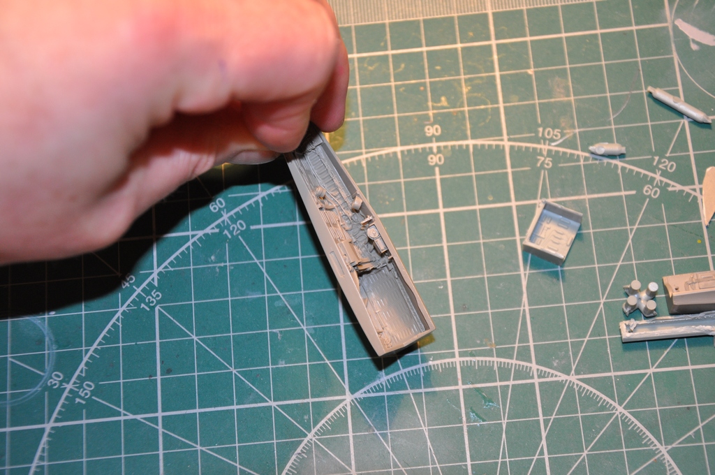 По совету АЛЕКСЕЯ я посмотрел его стройку, и понял, что проблема с нишами шасси не только у меня и собрал я ее не правильно, поскольку я соединил части фюзеляжа, распилил нишу и удлинил ее с помошью двухкомпонентной шпакли