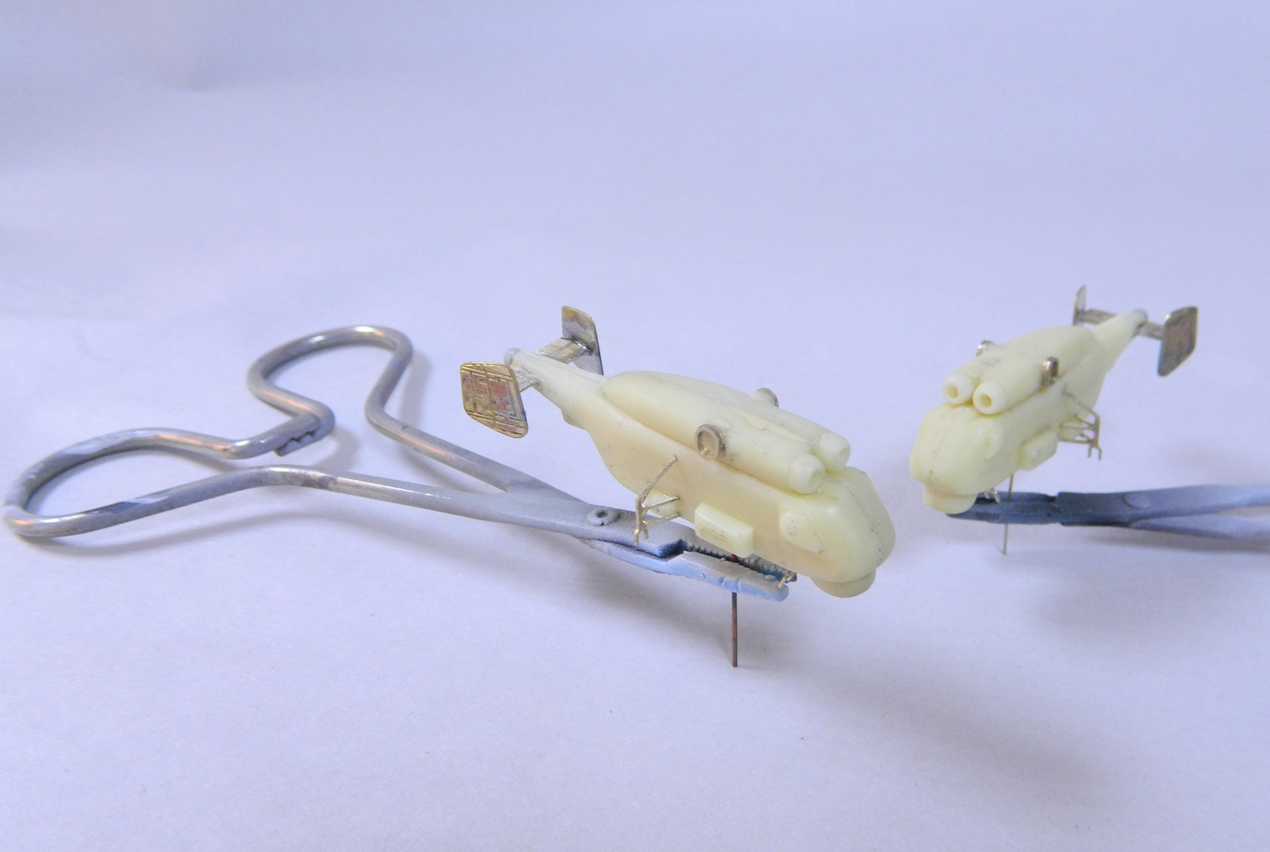 Ещё понятно, когда на модели много одинаковых деталей..., но когда эта деталь одна.... В чём смыслы...?! Не понятно....Не проще ли было сделать сразу деталь, в данном случае вертолёт, чем заморачиваться со всей этой лабудой, с отливкой...?!