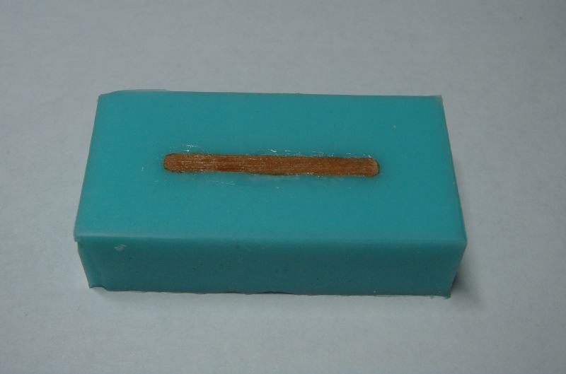 Разобрал, и попробуем аккуратно вынуть без разрезания. Вот на этот брусочек ушло 11мл. силикона.