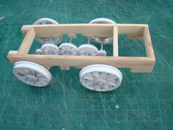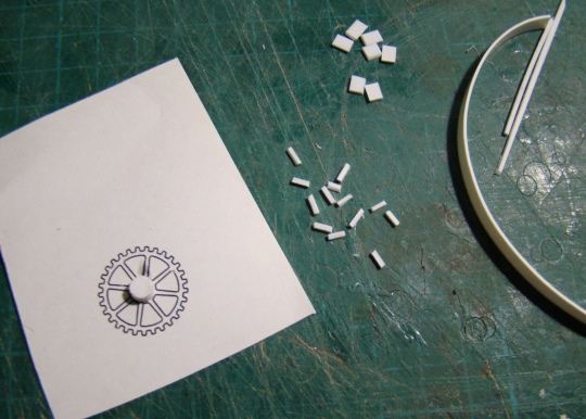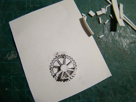 @Юрий Сотников написал:Wolk33 написал:Шестерни делал из пластика толщиной 1 мм, который клеил на рисунок шестерни на бумаге, делал это по тому же принципу как и с колёсами. Колёса тоже из пластика 1 мм, а спицы 0,5 мм.