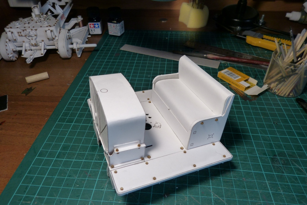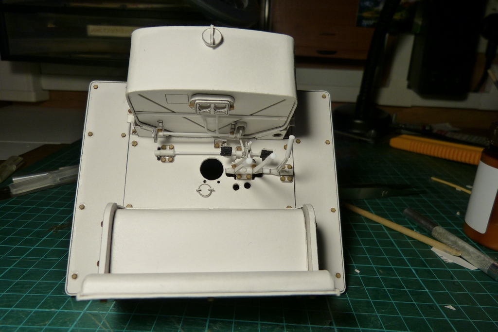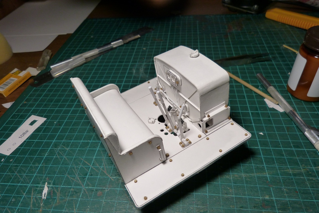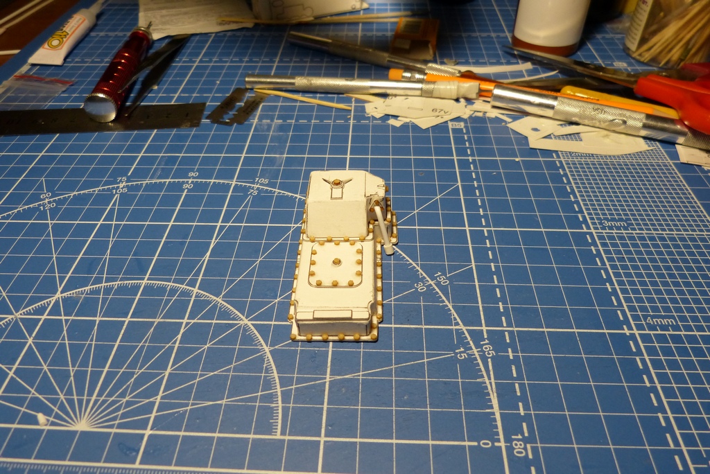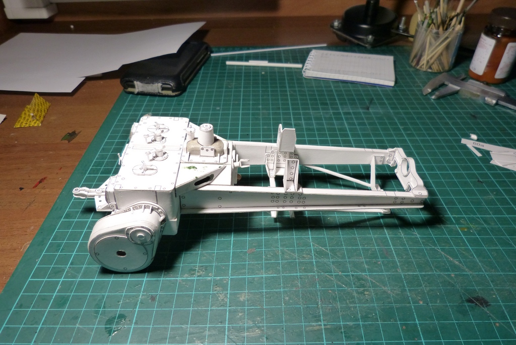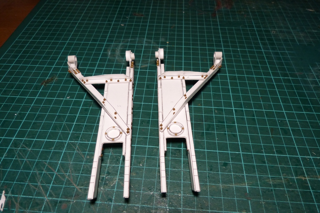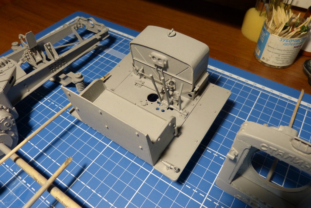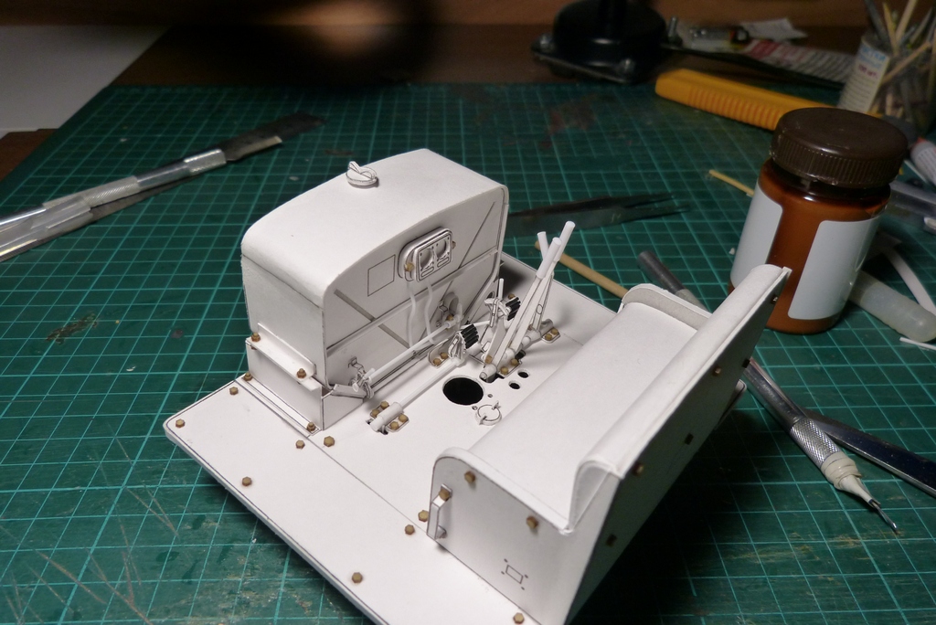 Доделал небольшие деталюшки,крепление задних фар,не ахти как вышло,но как смог,ушки крепления стоек корпуса радиатора,две тяги на корпусе.Сделал трубки радиатора,тут была жуткая проблема,смотрел сборки видел,что ребята наматывали проволочку имитируя ребрышки,но у меня не получилось.