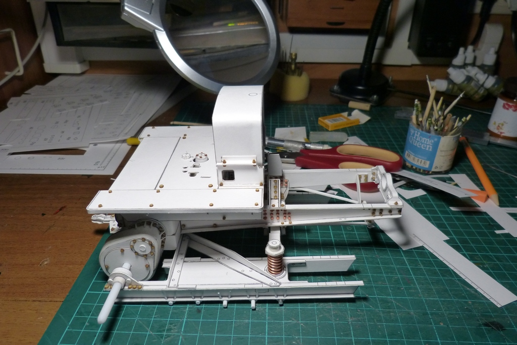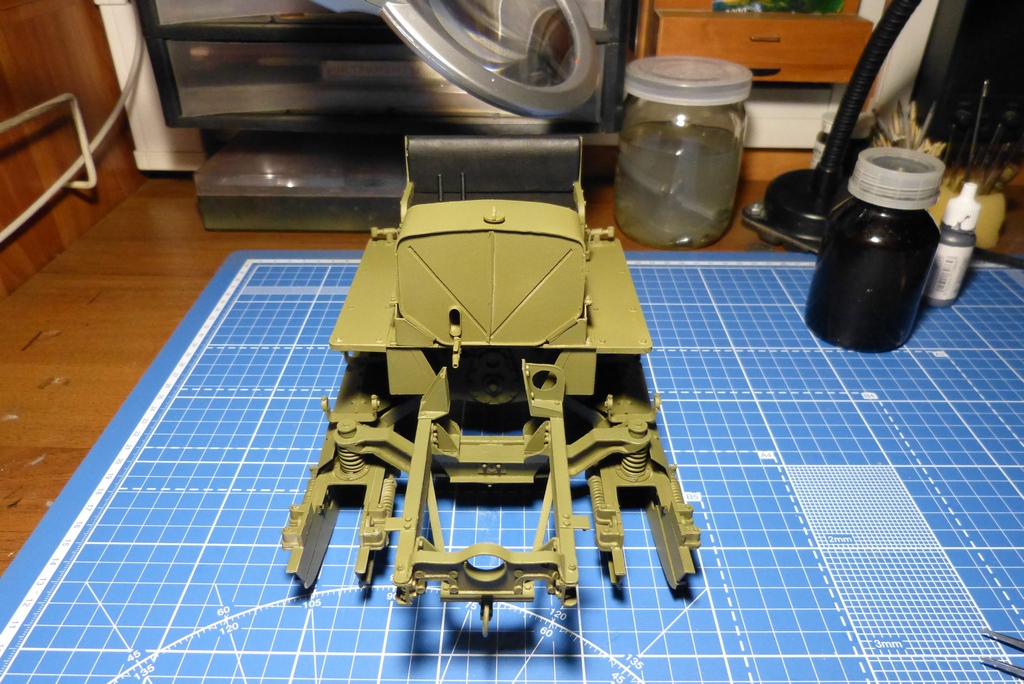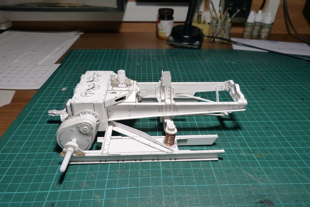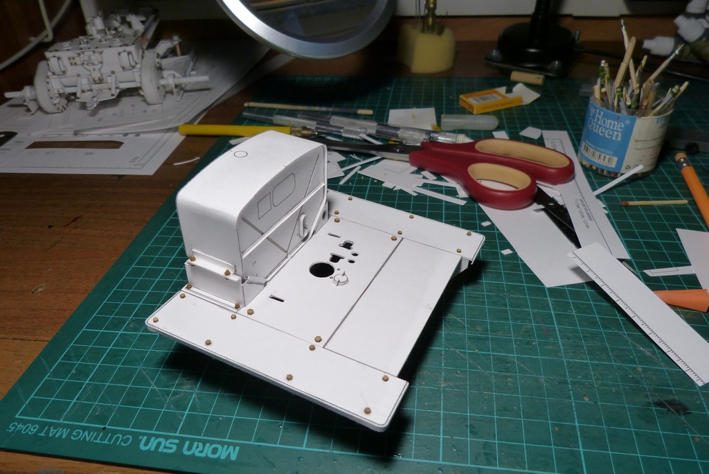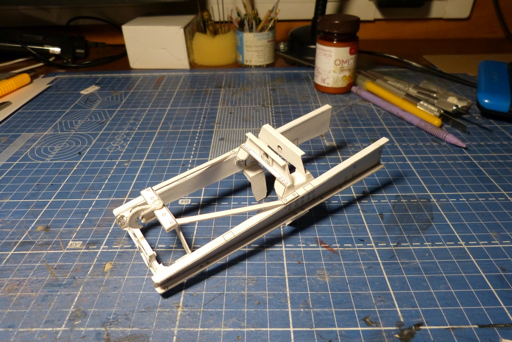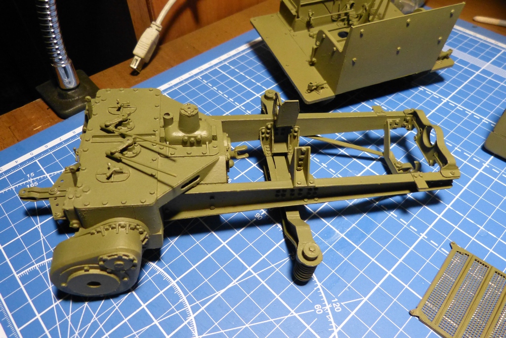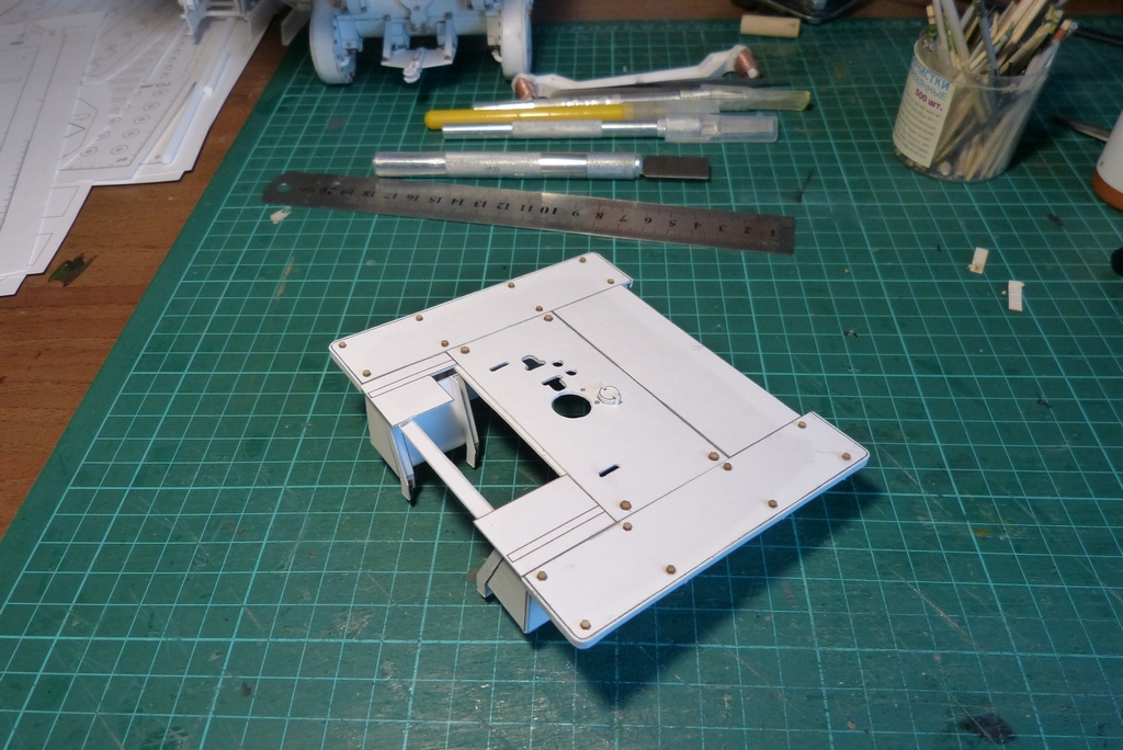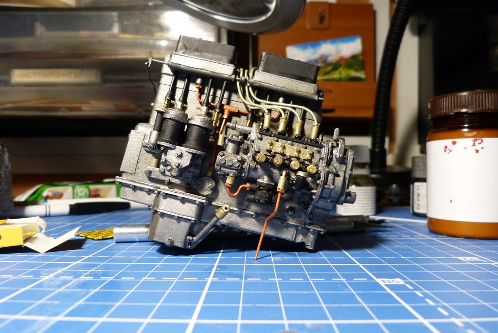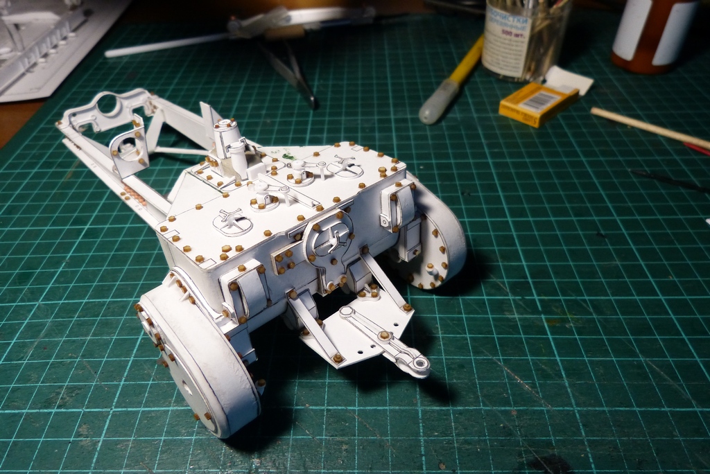 Доделал небольшие деталюшки,крепление задних фар,не ахти как вышло,но как смог,ушки крепления стоек корпуса радиатора,две тяги на корпусе.Сделал трубки радиатора,тут была жуткая проблема,смотрел сборки видел,что ребята наматывали проволочку имитируя ребрышки,но у меня не получилось.
