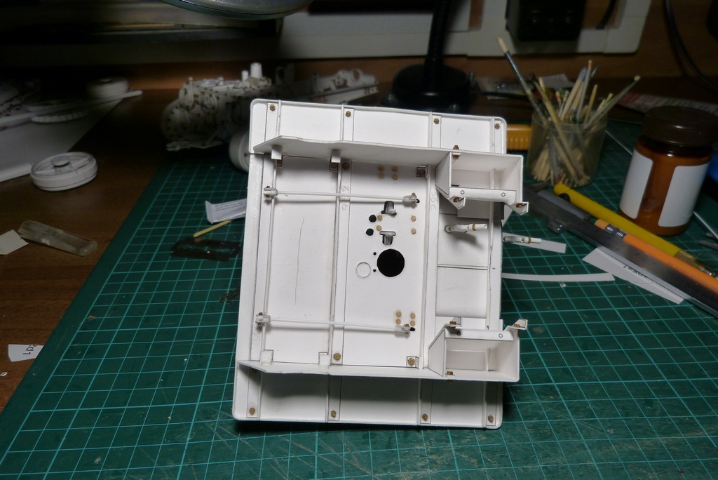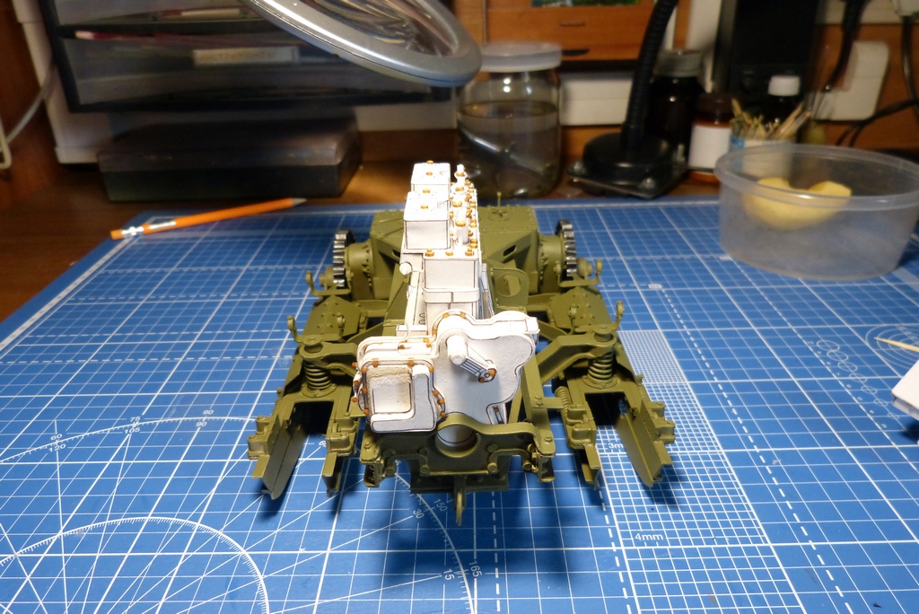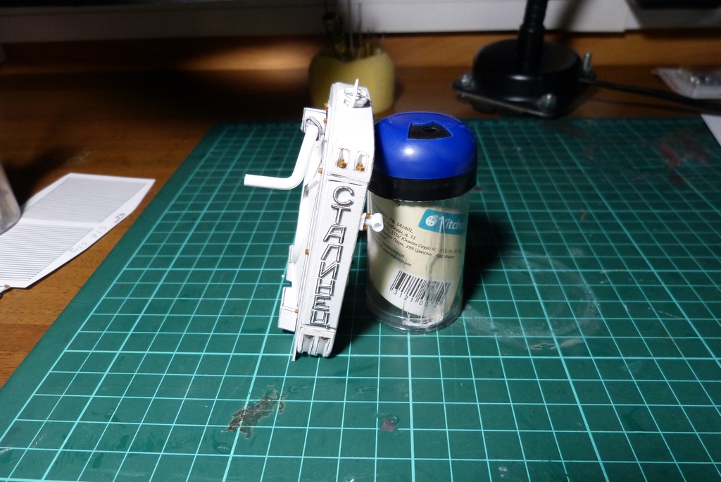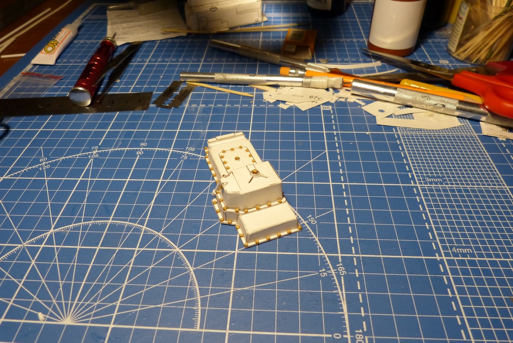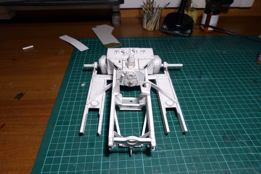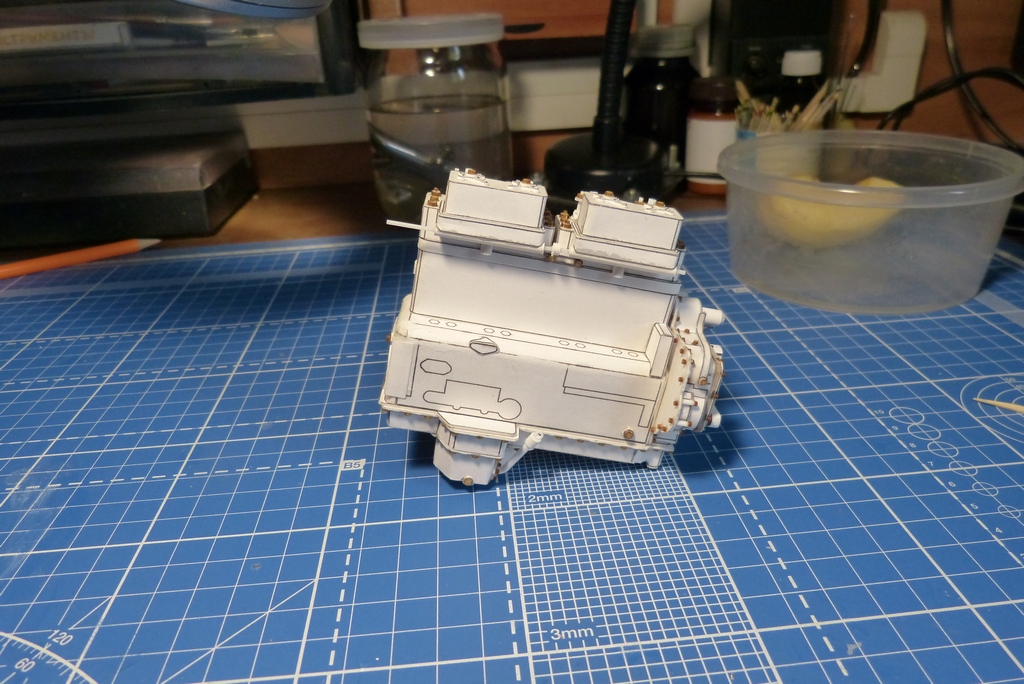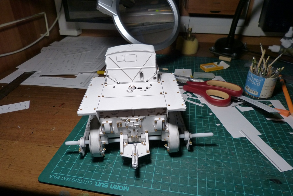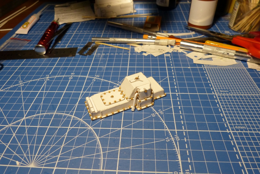 Доделал небольшие деталюшки,крепление задних фар,не ахти как вышло,но как смог,ушки крепления стоек корпуса радиатора,две тяги на корпусе.Сделал трубки радиатора,тут была жуткая проблема,смотрел сборки видел,что ребята наматывали проволочку имитируя ребрышки,но у меня не получилось.