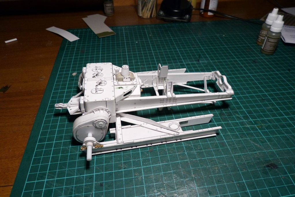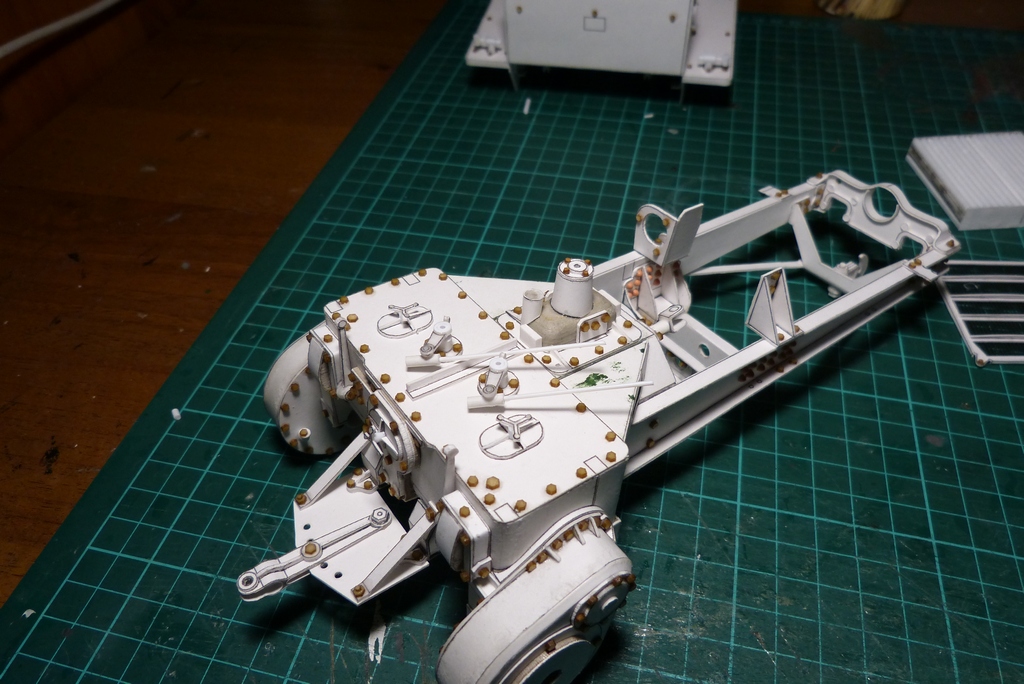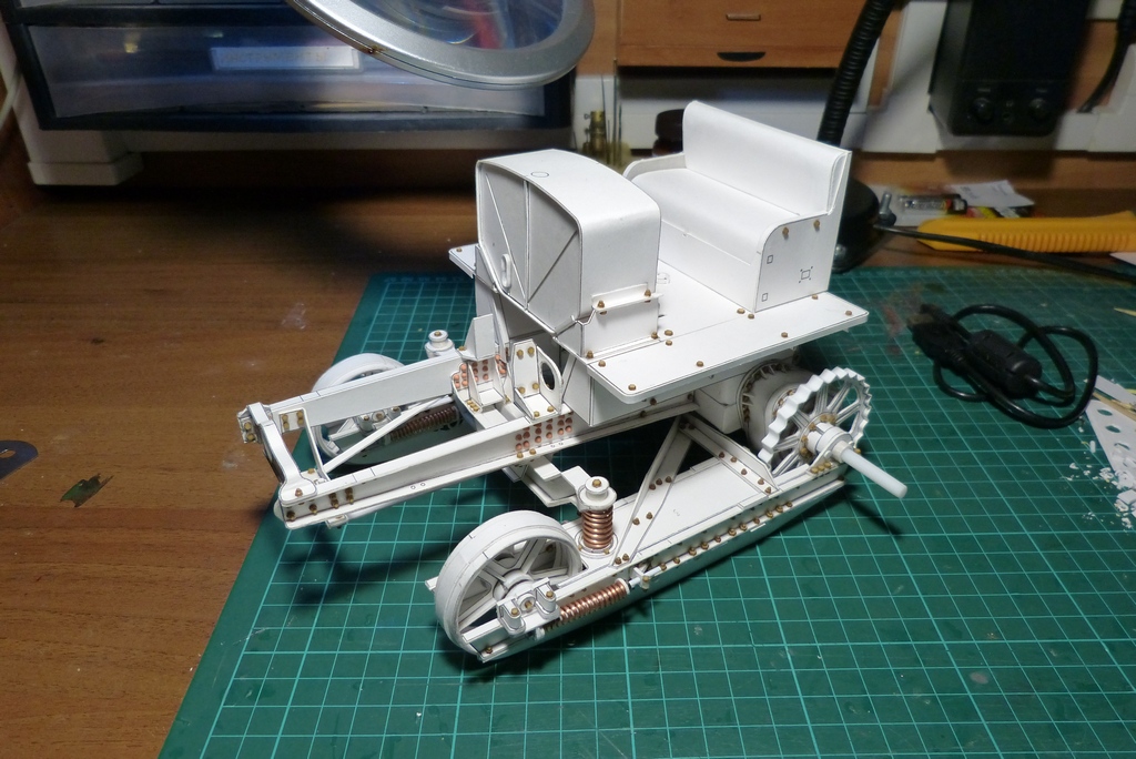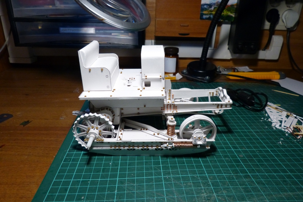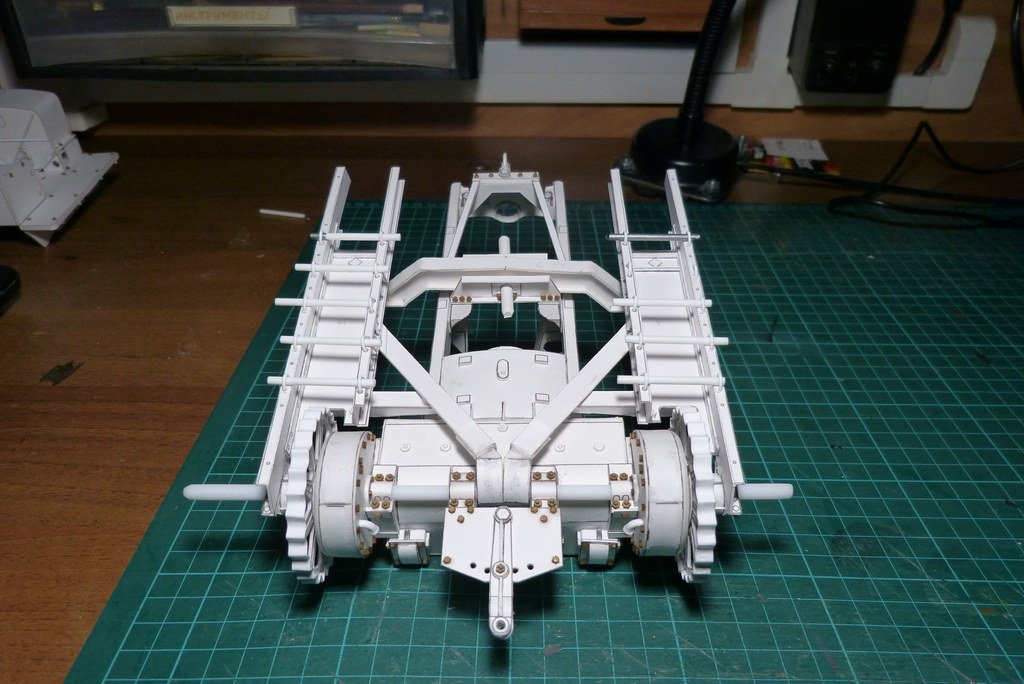 Вот теперь и я решил попробовать построить сразу оба трактора.Материал только чертежный ватман без применения картона.Картон только на цепь гусениц лазерной резкой.Немного пластиковых прутиков для гидроразводки.