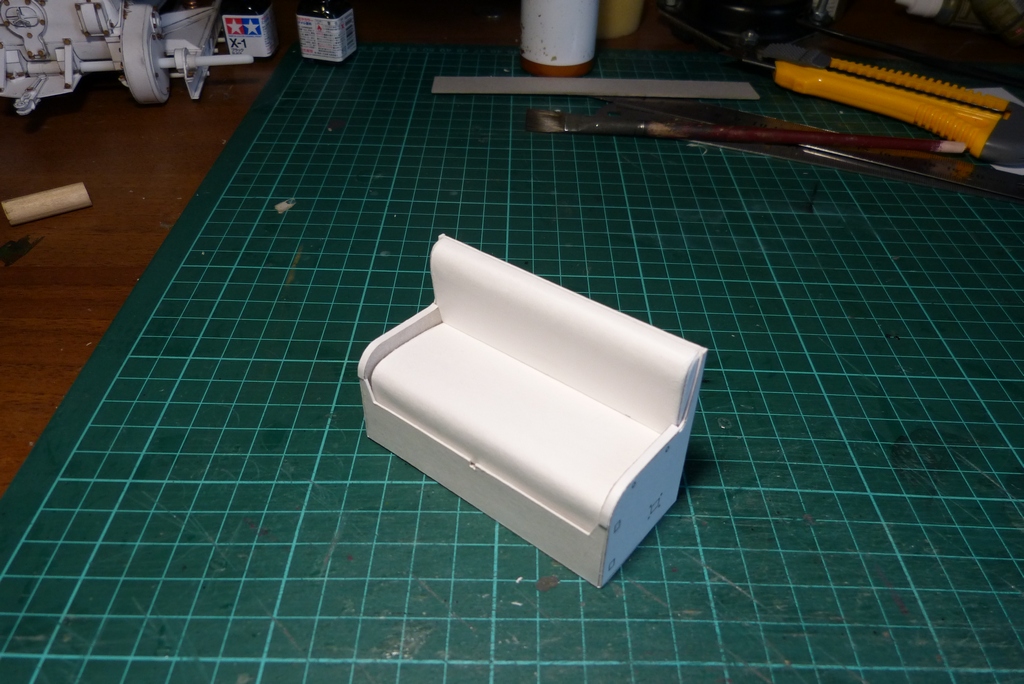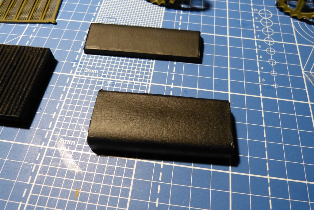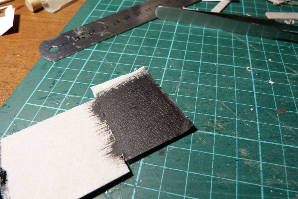 Возникла проблема с имитацией кожи на сидухе,от старых сапог толстовато,мял газеты,пробовал бумагу от сигарет,не понравилось.Последняя попытка мне понравилась,мальнул обычный малярный скотч