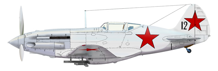 5. Як-7Б, 21 иап КБФ, март 1943, рисуют как окрашенную в два цвета по довоенной схеме, но по фото это не очевидно;