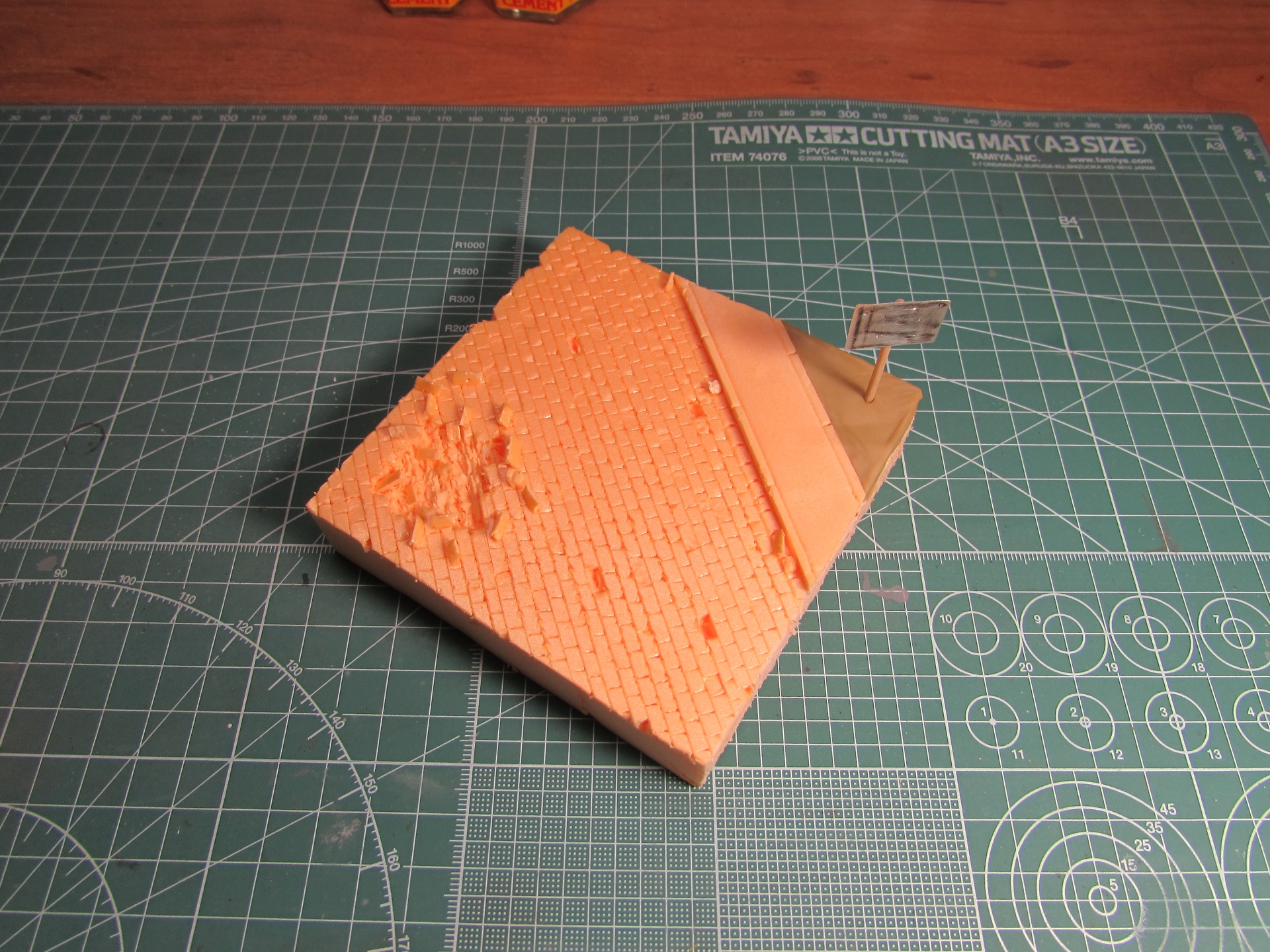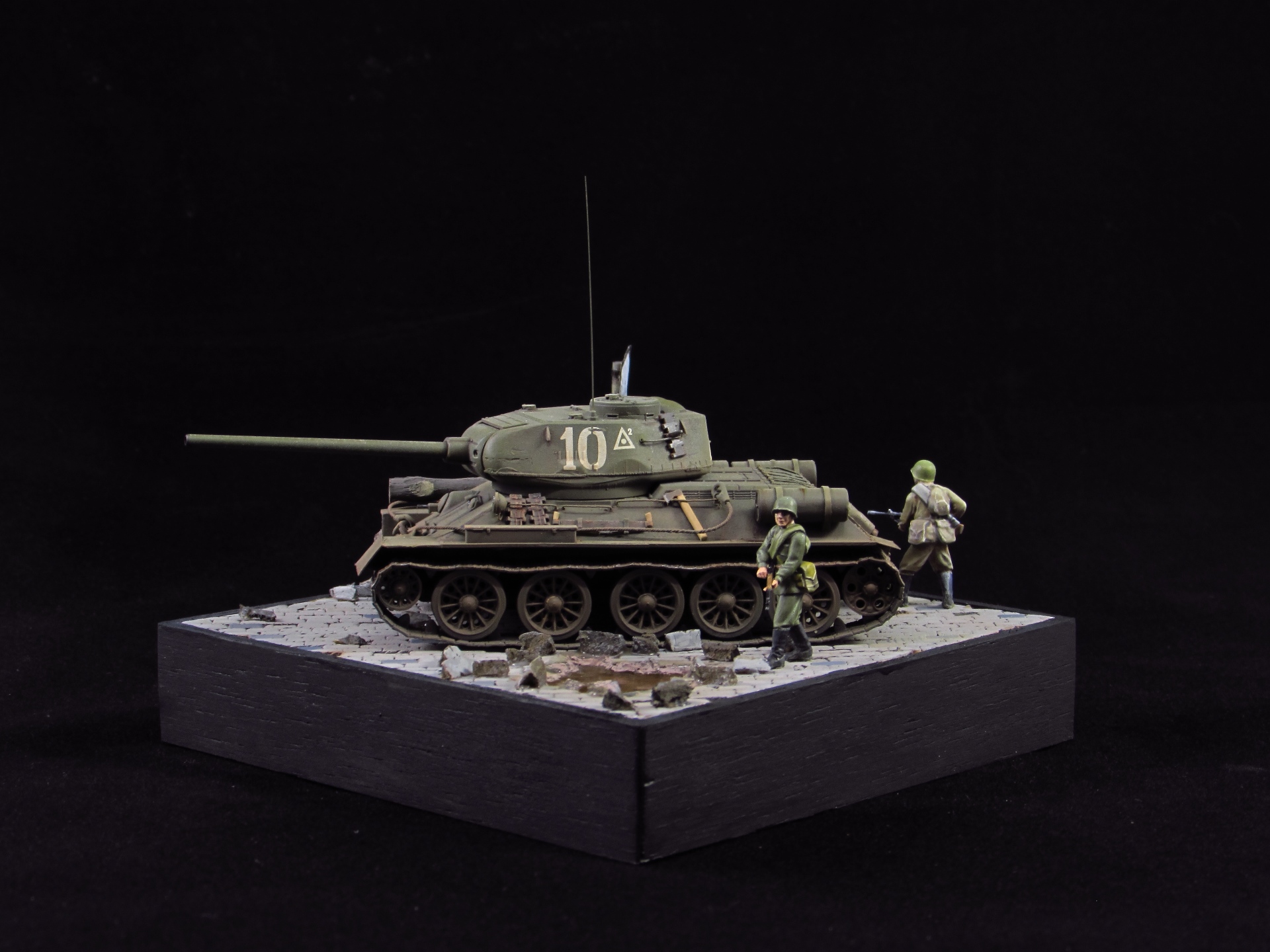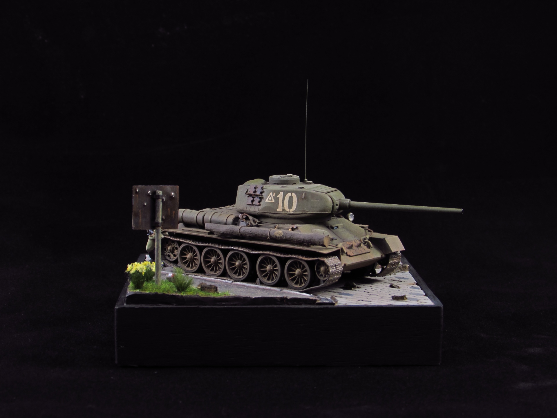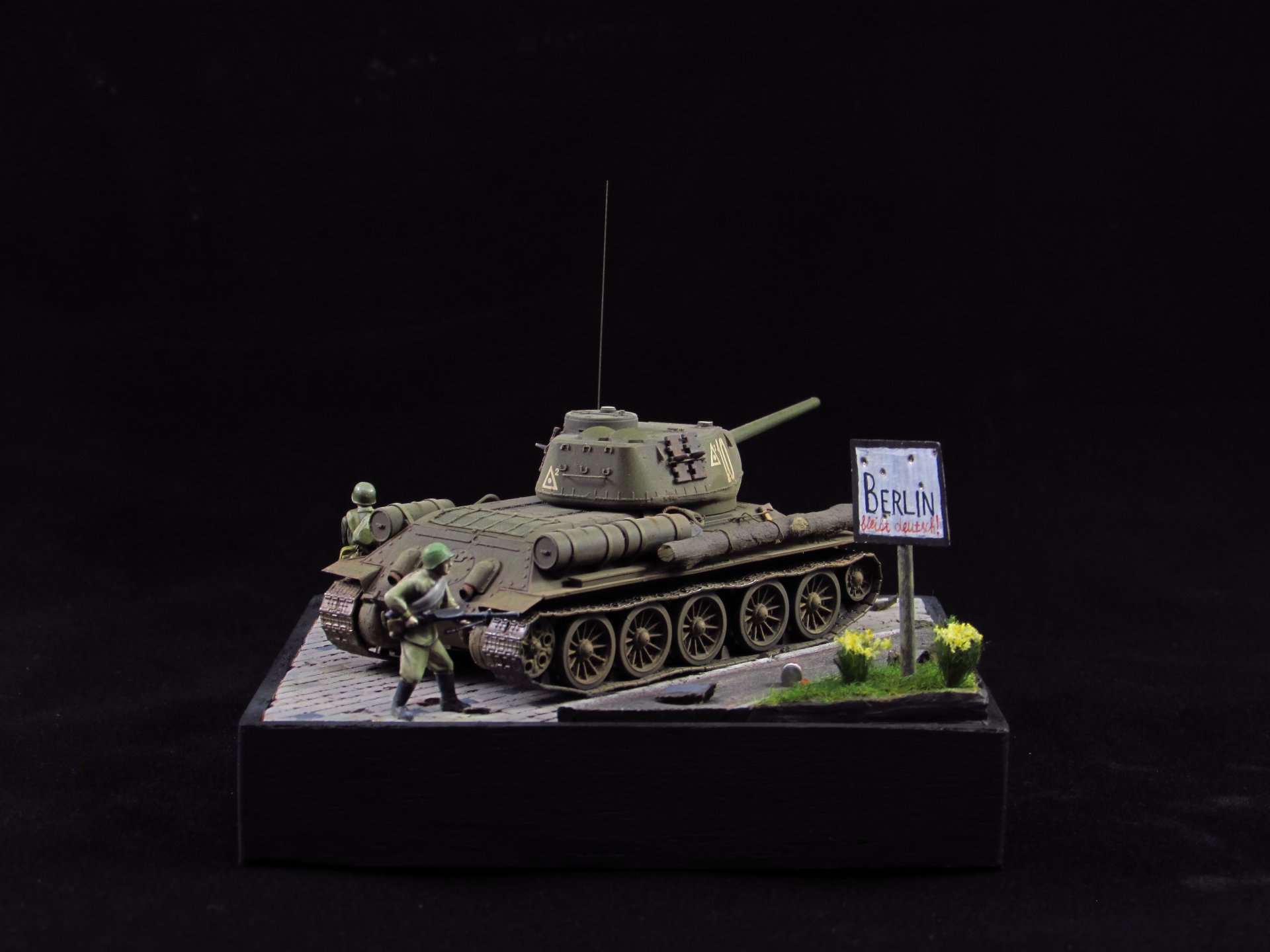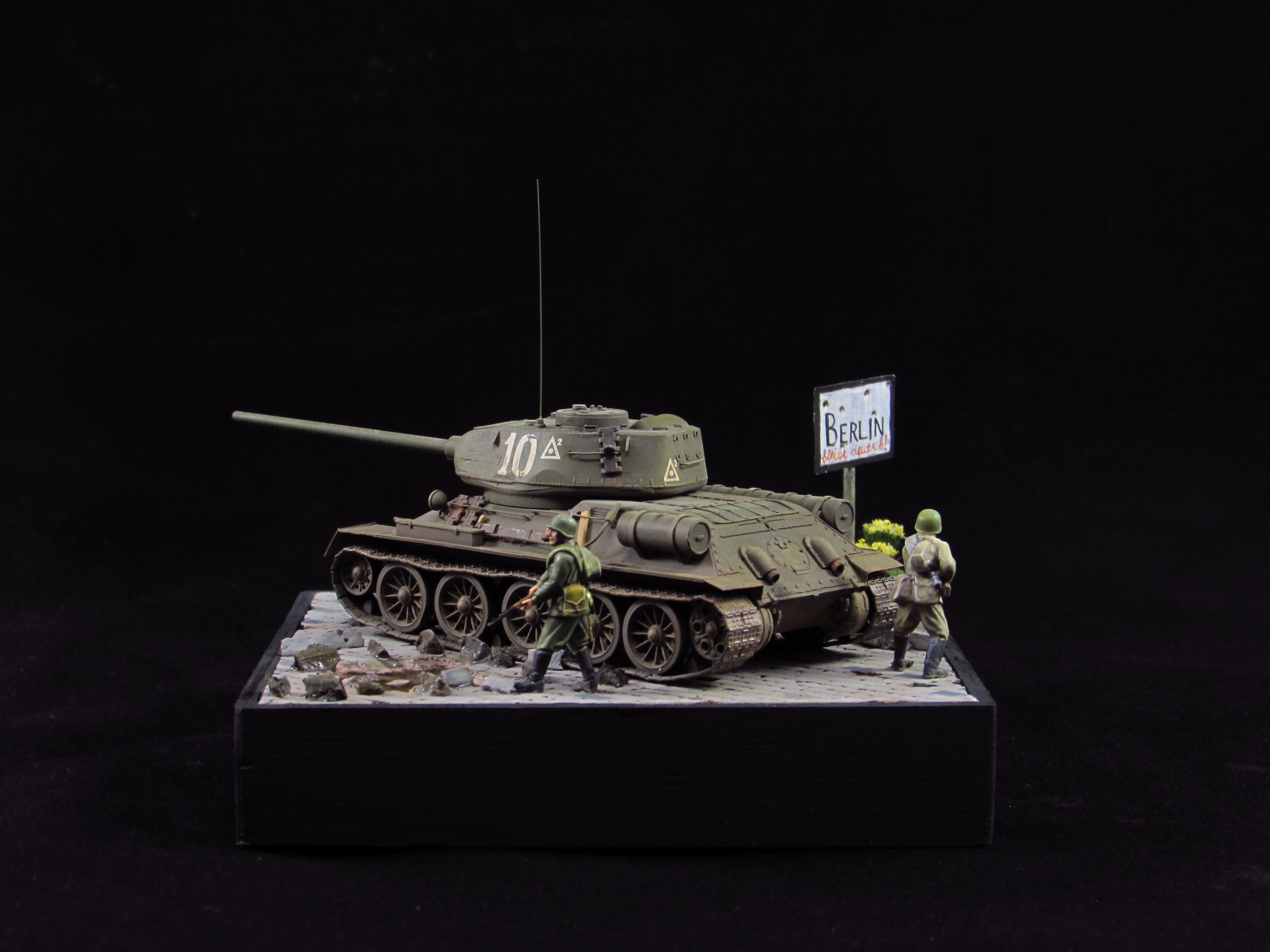 Итак, работа с основанием. Идея - танк и пехотинцы в ходе наступления в пригороде Берлина медленно, но верно двигаются вперед мимо знака, обозначающего начало городской черты.