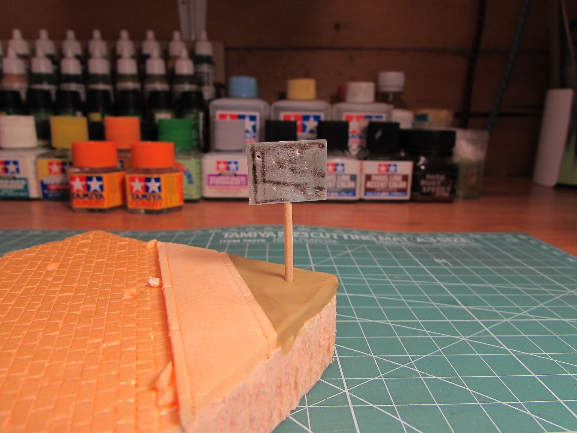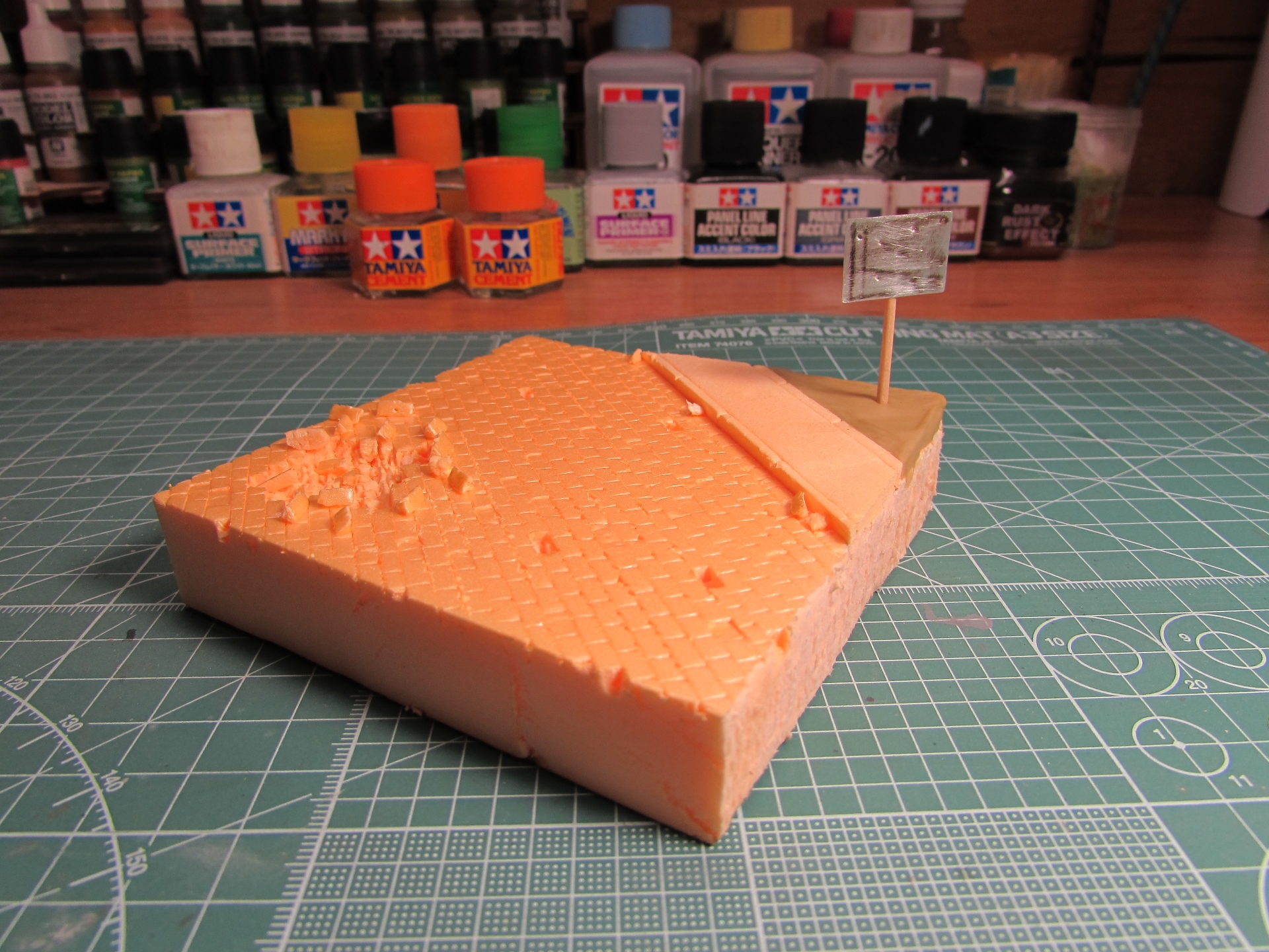 Материалы: пеноплекс, пластилин скульптурный, зубочистка, жесть от банки колы.