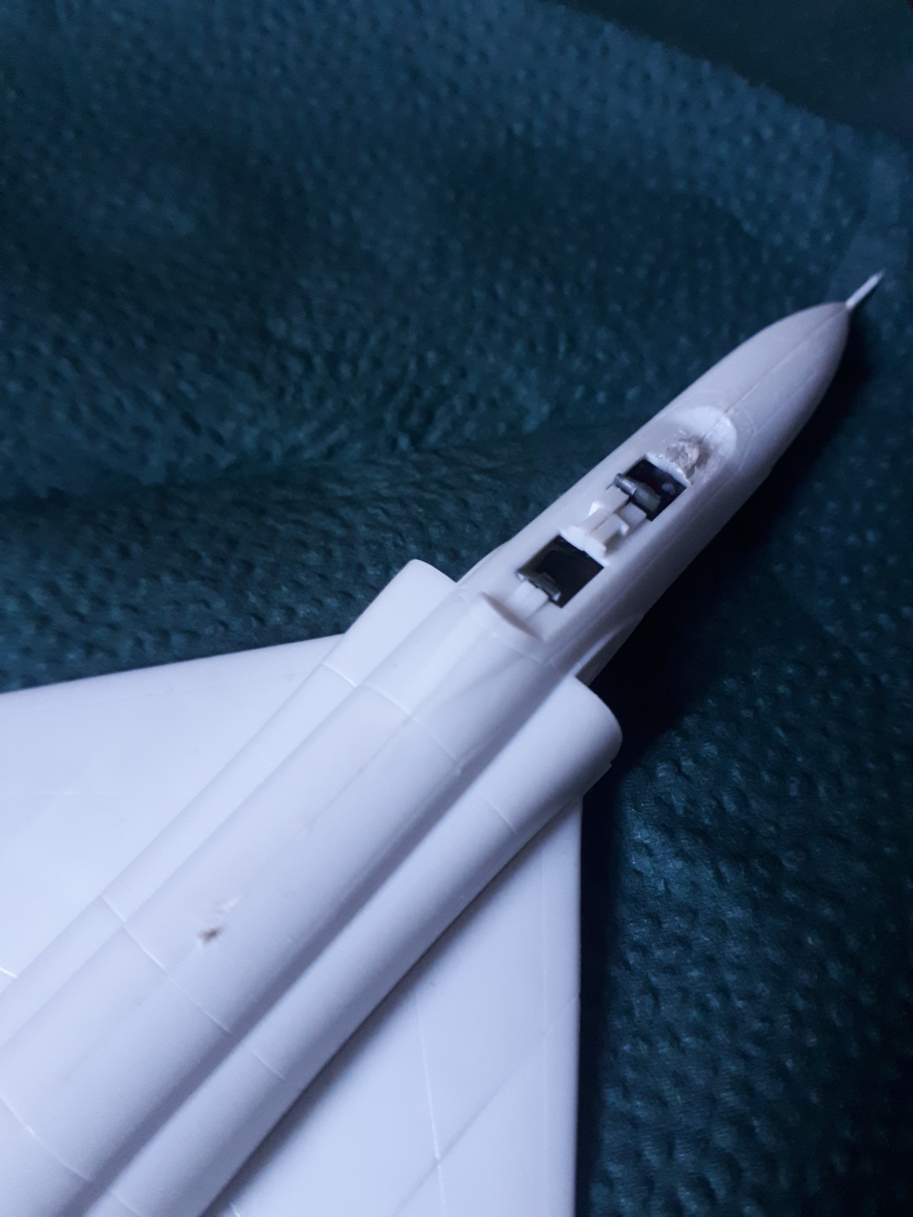 Ступенька на брюхе и наплыв в передней части кабины. Пытаюсь выправить с помощью шпатлевки. Похоже, делаю что-то не так.