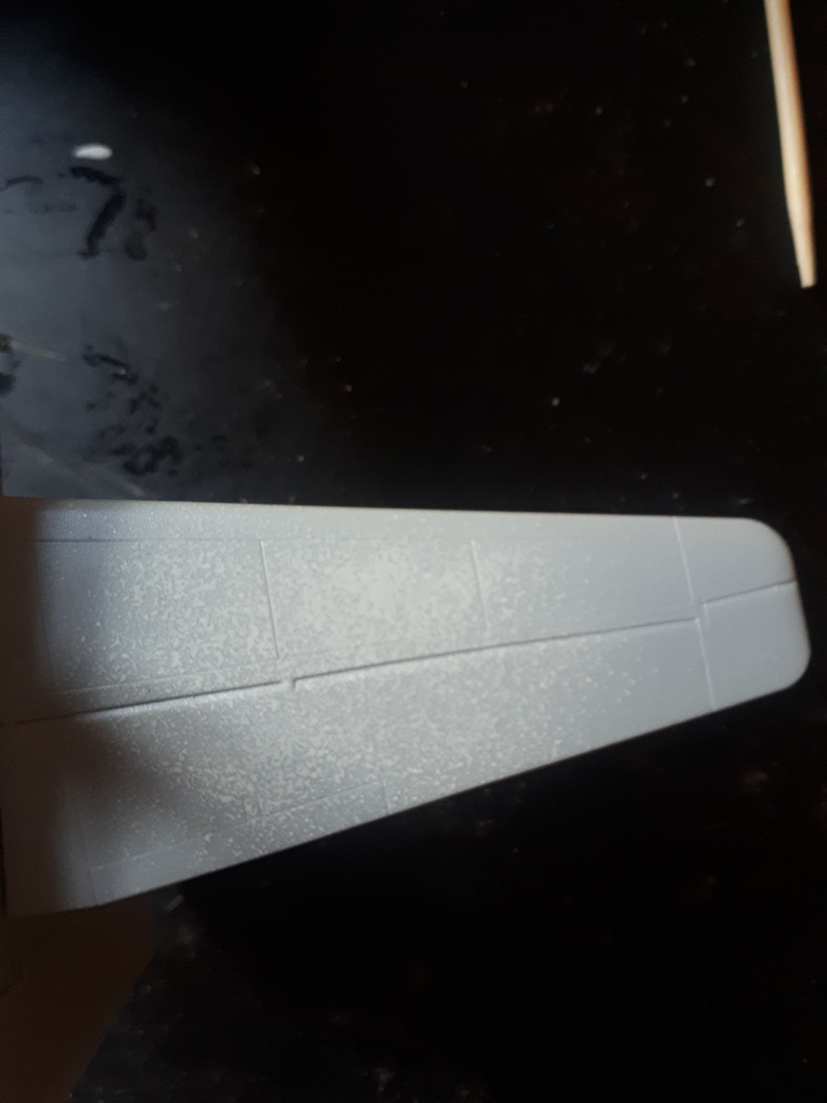Использую тамиевскую, слегка развожу каплей разбавителя и наношу на неровность с небольшим избытком. Затем даю подсохнуть и корректирую уховерткой, смоченной в том же разбавителе. Тут и начинается проблема: на стыке пластика и шпатлевки, которая заполняет впадину, образуется неровность.