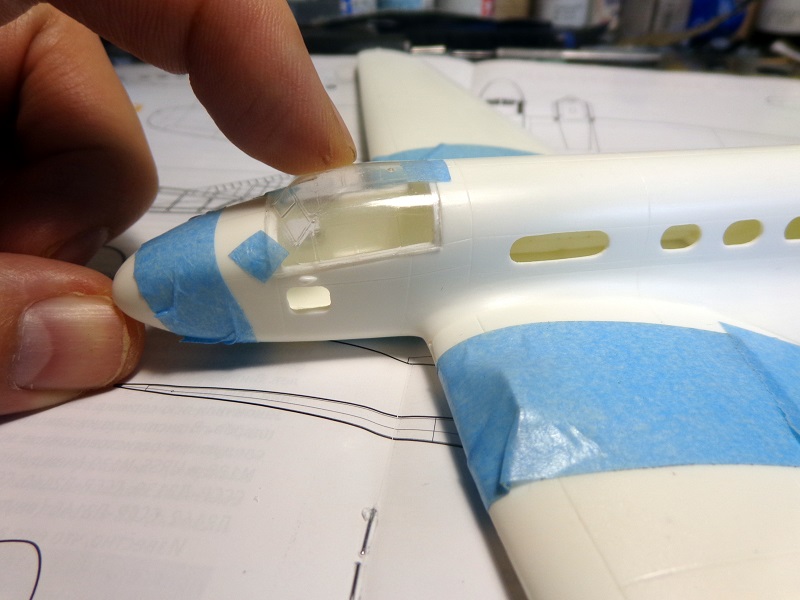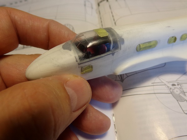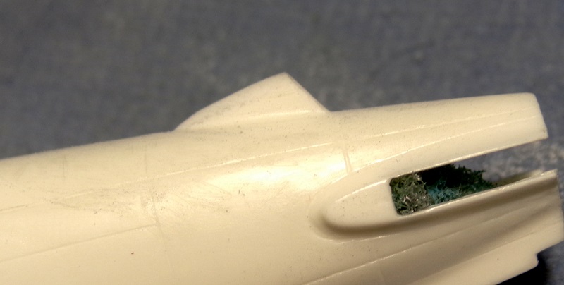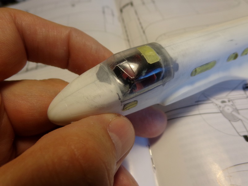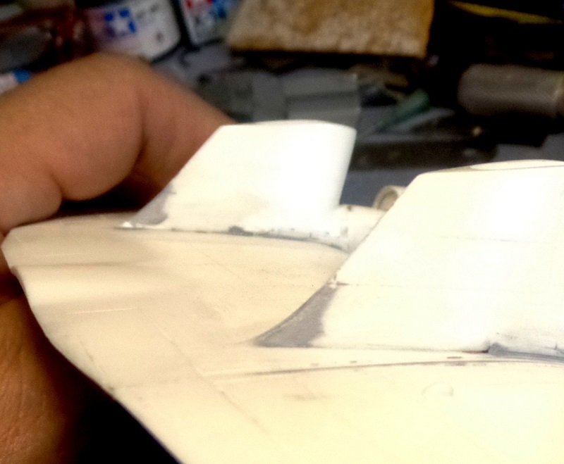 Итак, "притёр" фонарь. Глазом плохо видно, всё белое и полупрозрачное. Но на ощупь (пальцем) вроде гладко получилось. Каплевидные наросты под трубки Вентури пришлось "снести", так как мешали вышкуривать стык. Потом как нибудь сделаю новые.
