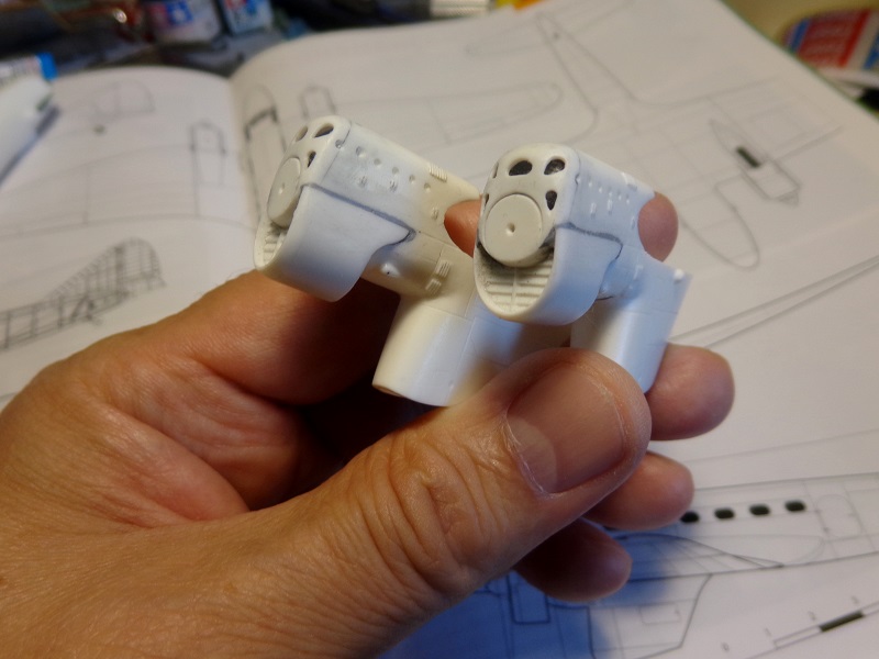 И вот тут вылезает "косяк". При установке моторов на место получается очень заметный угол атаки оси моторов относительно продольной оси фюзеляжа. То есть они выглядят "задранными" вверх.