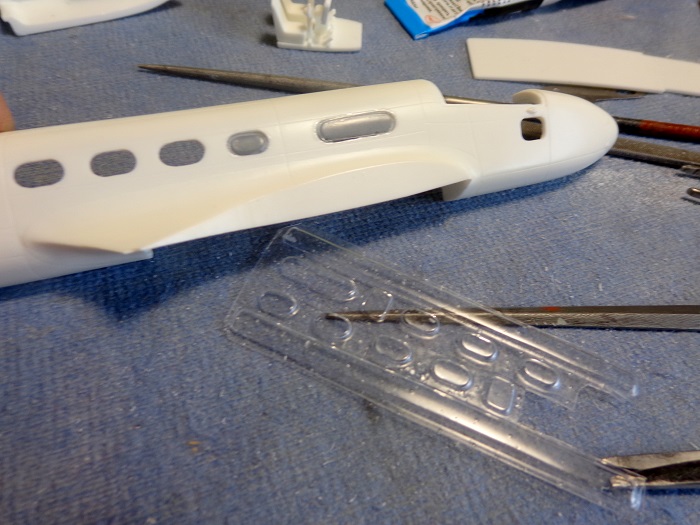Как я и предполагал, остекление будет нелегкой процедурой. Эх, было бы хорошо приклеить их целиком одной панелью, но в этом случае они получаются утопленными в проёме и это довольно заметно. Поэтому приходится вырезать каждую стекляшку по контуру и приклеивать циакрином. Канительно.