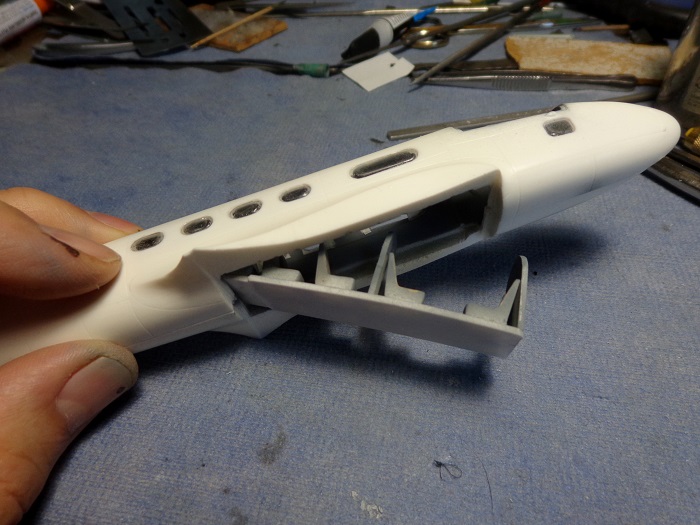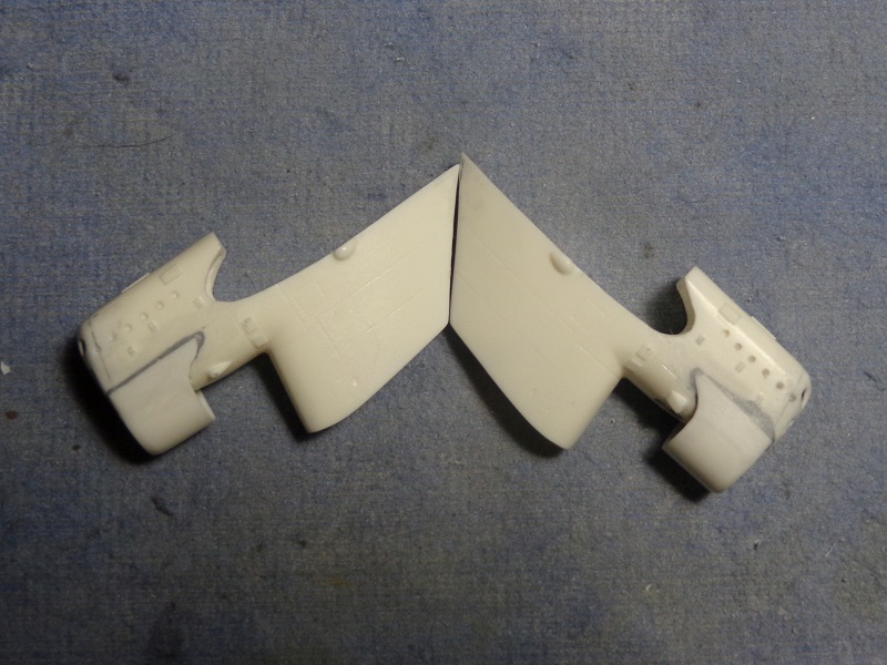 Я всё-таки спилил немного плоскость соприкосновения штанов и центроплана. Вот здесь слева штаны уже подпилены, справа ещё нет.