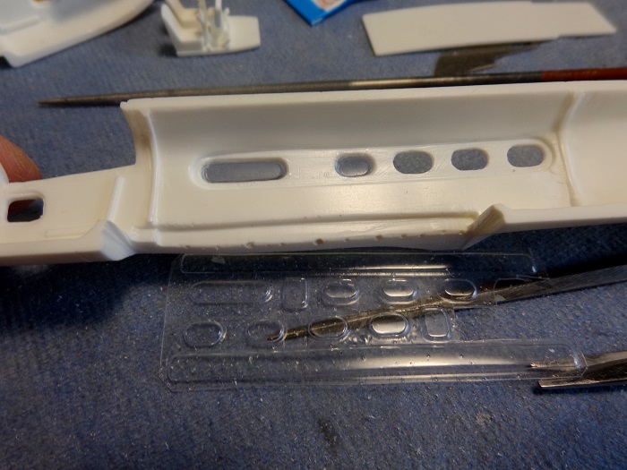 Я как-то очень не люблю эти выдавленные из пластика фонари, так как очень сомневаюсь в своих способностях их вырезать как надо. Но вот, с первого раза, без проблем он почти идеально "встал" на место.