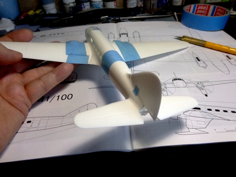 Крыло из трех частей склеил. С фюзеляжем снизу вроде неплохо сопрягается.