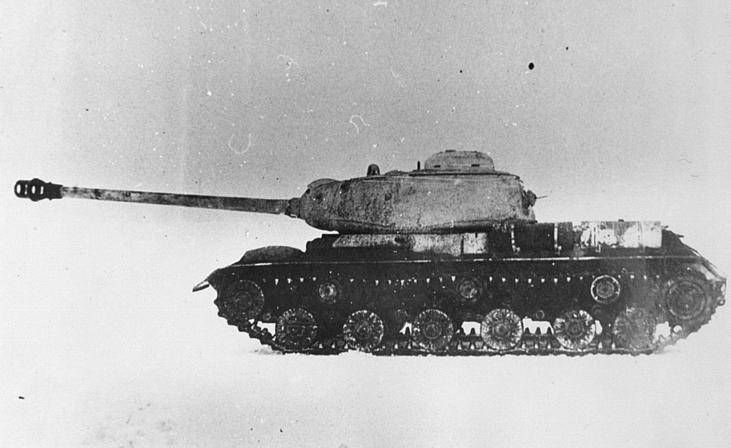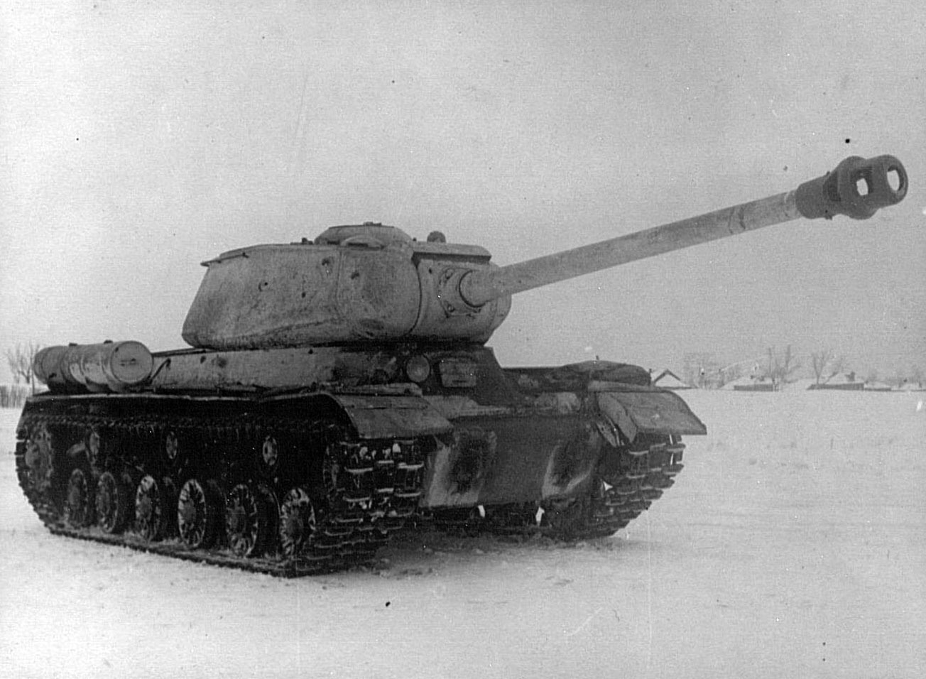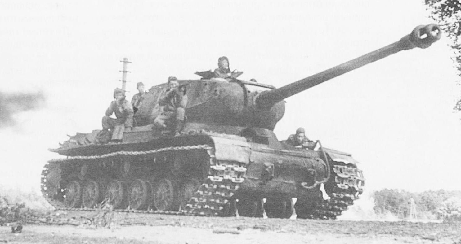 На переднем плане как раз ИС-2 с орудием с дульником "немецкого типа", хотя, видимо не самого раннего выпуска декабря-января 1943-44.