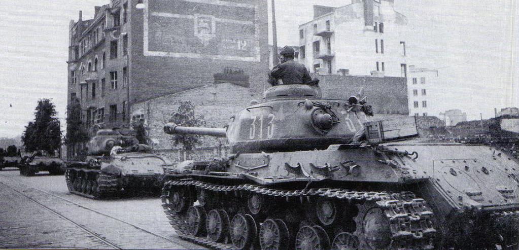 Добавлю в тему одно из моих любимых фото - послевоенный парад с ИС-2, пережившими войну.