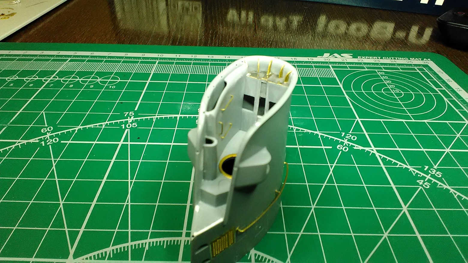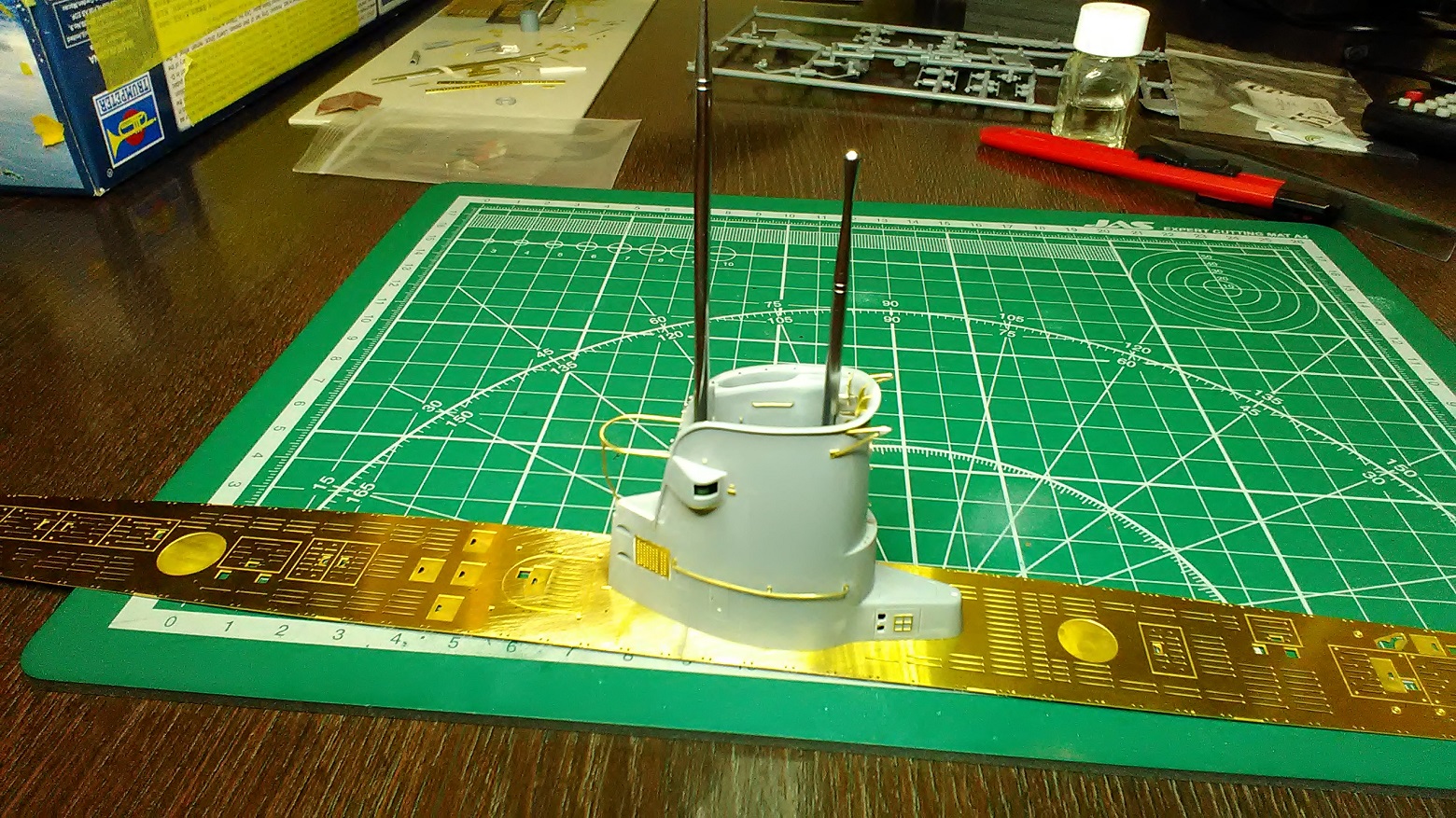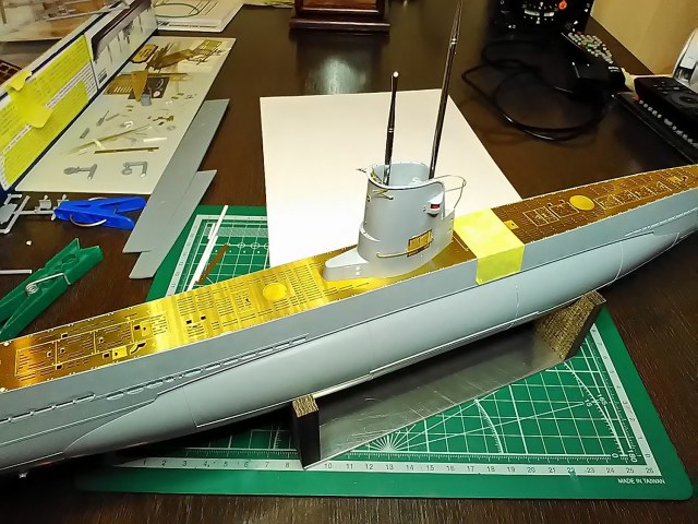 Теперь перископы выполняют роль гаек, для плотнее прижать рубку к палубному настилу (он составной, соединен пайкой)