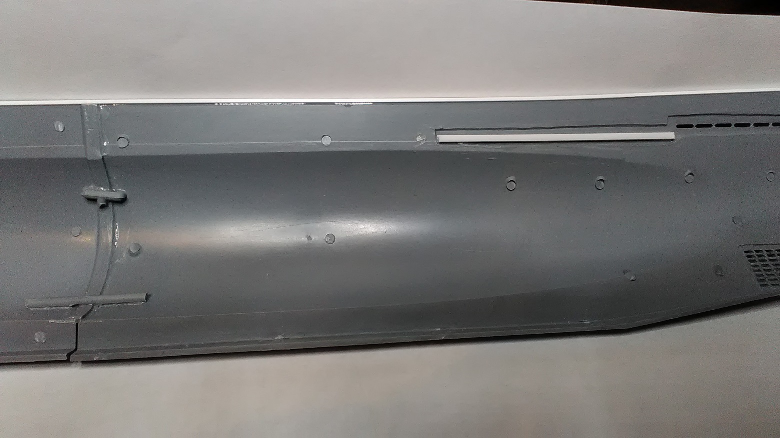 Так лодка, считай готова, пуськи не хватает, только. Эвергрюндя, смотрю, ладно лёг. Пластиком какой толщины пользуетесь? Про клей помнишь? Я замудипухивался свой кусок выравнивать - и шпаклем, и грунтом, и лаком, и клеем, и шкуром, и матом... Сейчас задул футуром, хватит, не могу больше. Оставлю так.