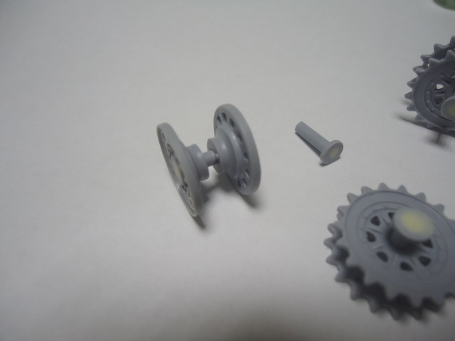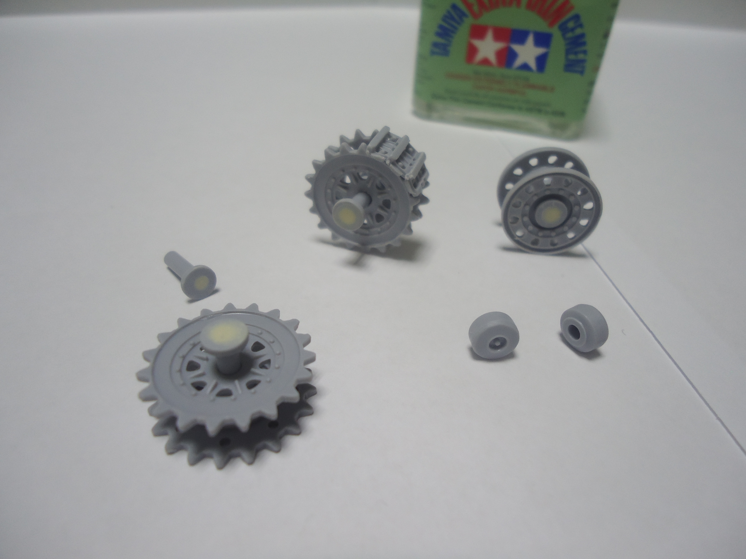 Два маленьких поддерживающих катка были вырезаны из кругового облоя, правда это не доставило хлопот. Кстати в наборе на дублирующих литниках ходовой остаются еще два поддерживающих катка и два комплекта ведущих звездочек.