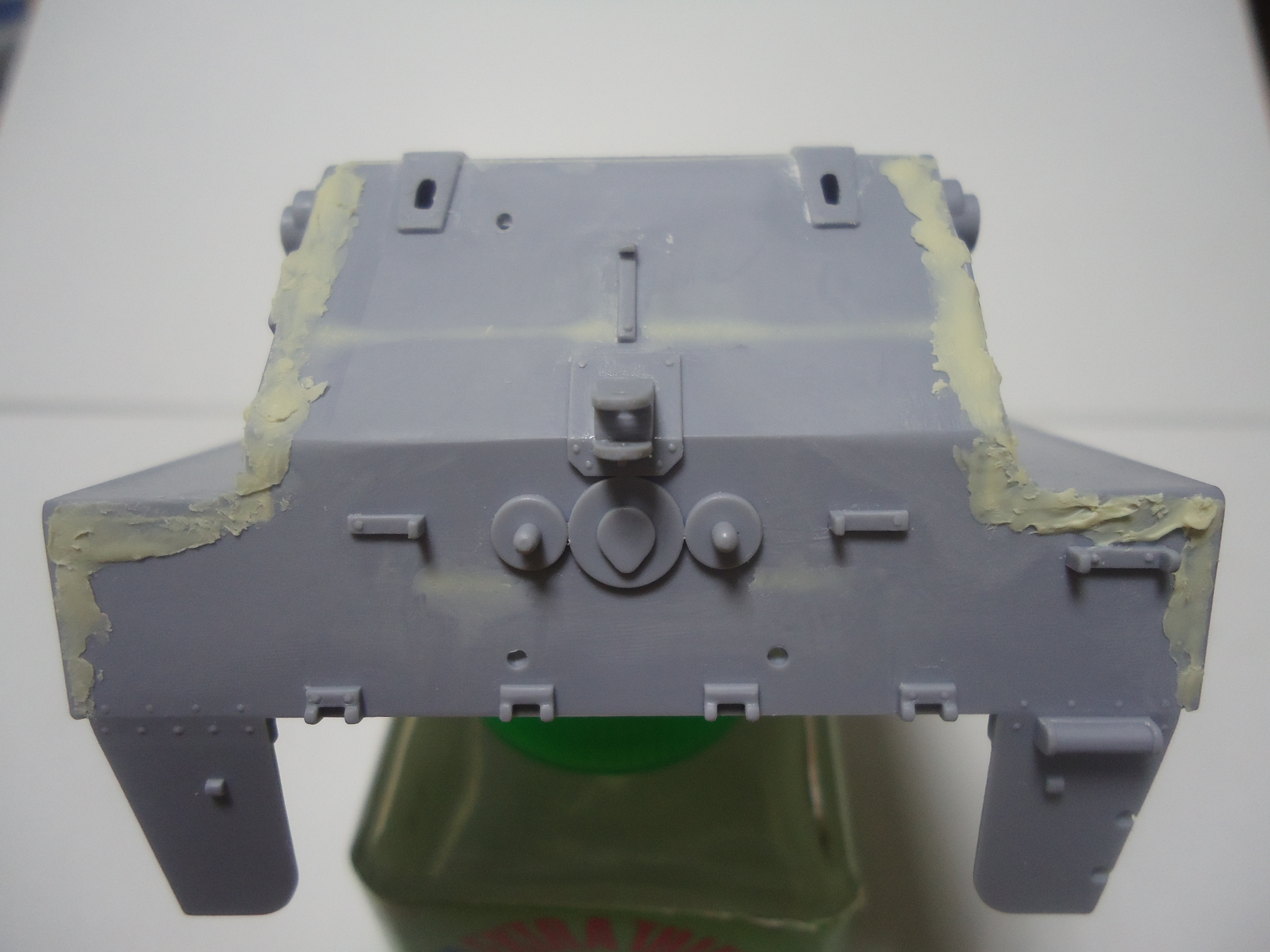 Также пришлось зашпатлевать и зачистить утяжины на кормовом листе, лобовом листе и по мелочи всякие царапины.