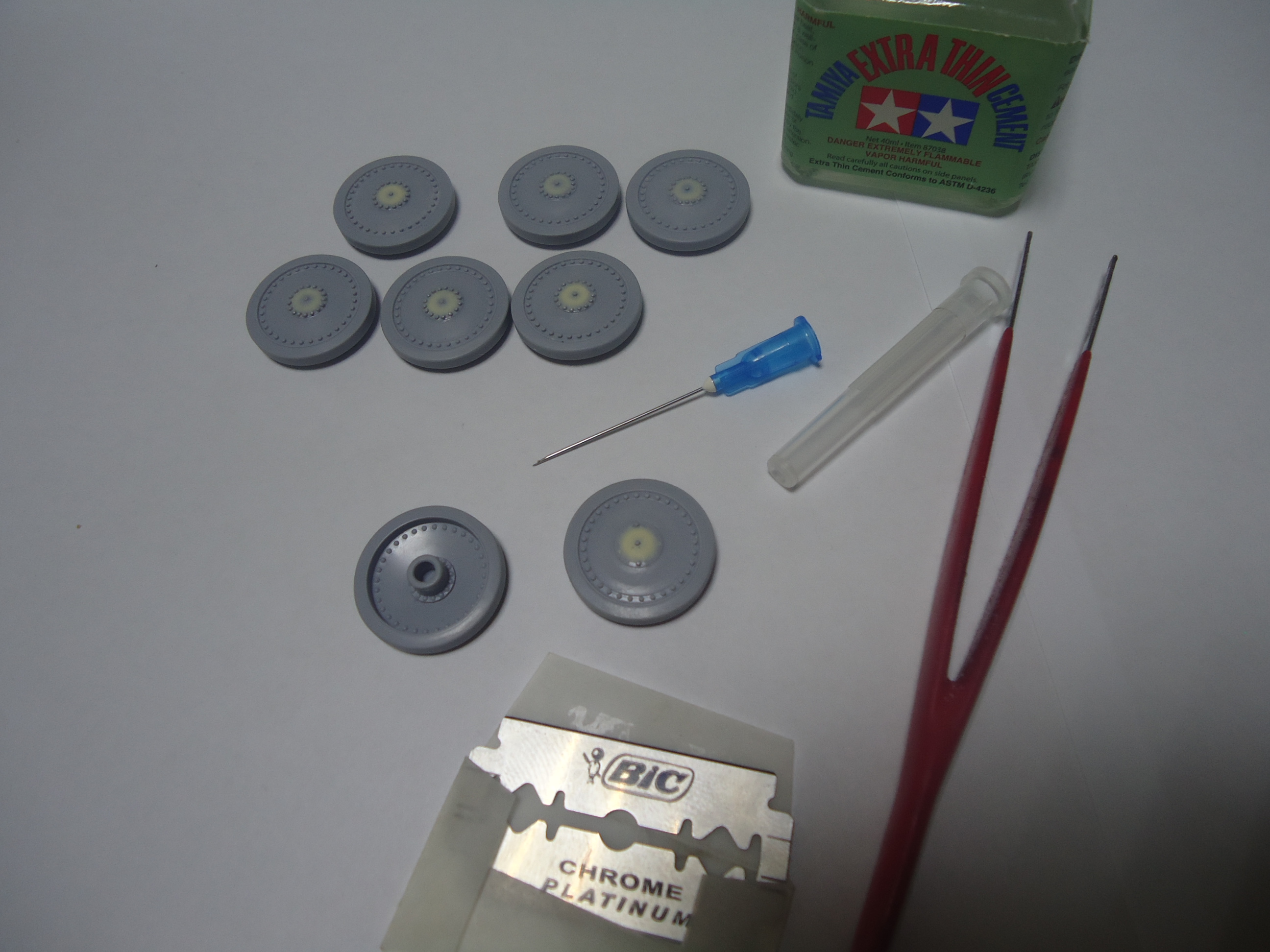 Все опорные катки в центре имеют хорошие утяжины, и зашпатлевать их не повредив болты ступицы не представлялось возможным, а потому было принято решение срезать их, зашпатлевать, выровнять, а потом вернуть болтики на место.
