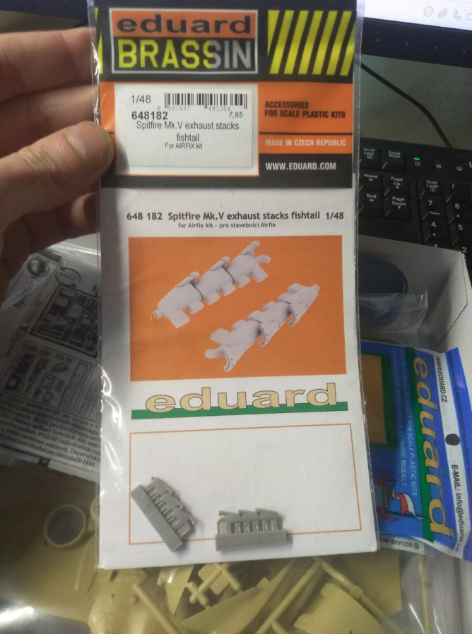 В общем заказал набор от Tamiya 61035+RB Model Металлические стволы пушек 20mm Hispano для Supermarine Spitfire Mk. Vb + 49256 Eduard 1/48 Фототравление для Spitfire Mk. Vb + 48483 Eduard 1/48 Фототравление Spitfire Mk.Vb landing flaps + QB48 212 Quickboost 1/48 Набор для Spitfire Mk. Vb trop engine cover