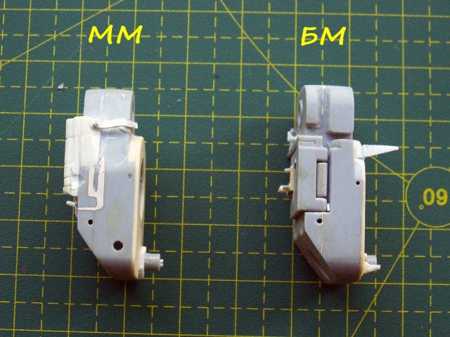 Т.к. стволы у Б-4ММ и Б-4БМ (Б-4) по длине разные, соответственно масса также разная, а у орудия отсутствует уравновешивающий механизм, то разницу масс компенсировали увеличением размера (массы) казенника у последних. У орудия Б-4ММ казенник уже на 40мм, в масштабе 1,15мм.