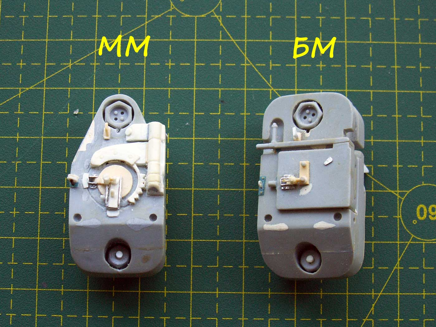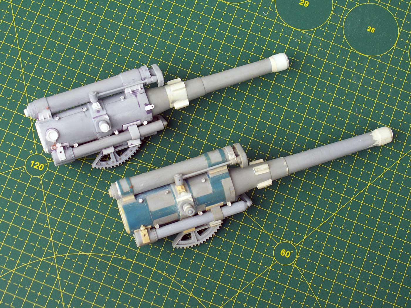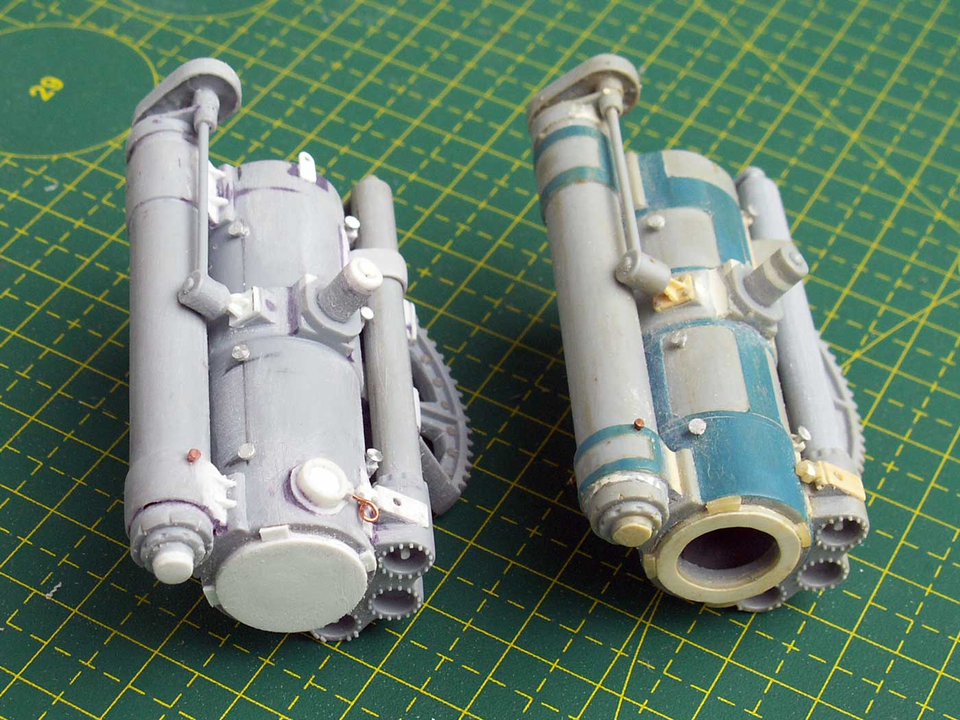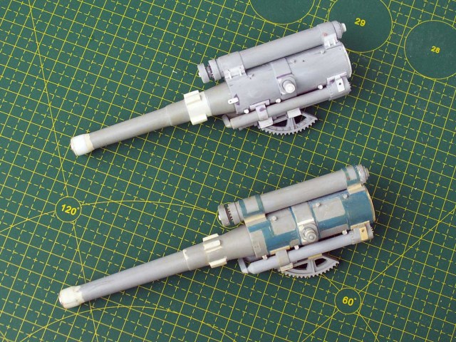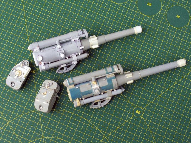 1. Казенная часть для двух орудий - зашпаклевано все, что можно было зашпаклевать, откорректирована форма, добавлен механизм выстрела, сделан трехтактный затвор на ММ, крюки для троса на БМ, всякие технологические отверстия
