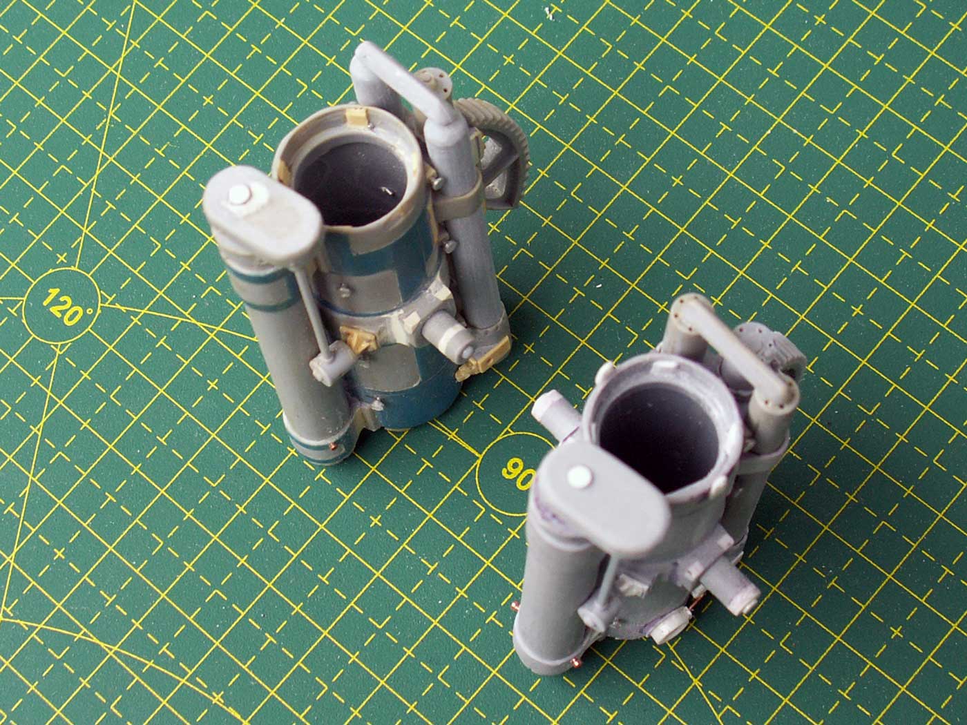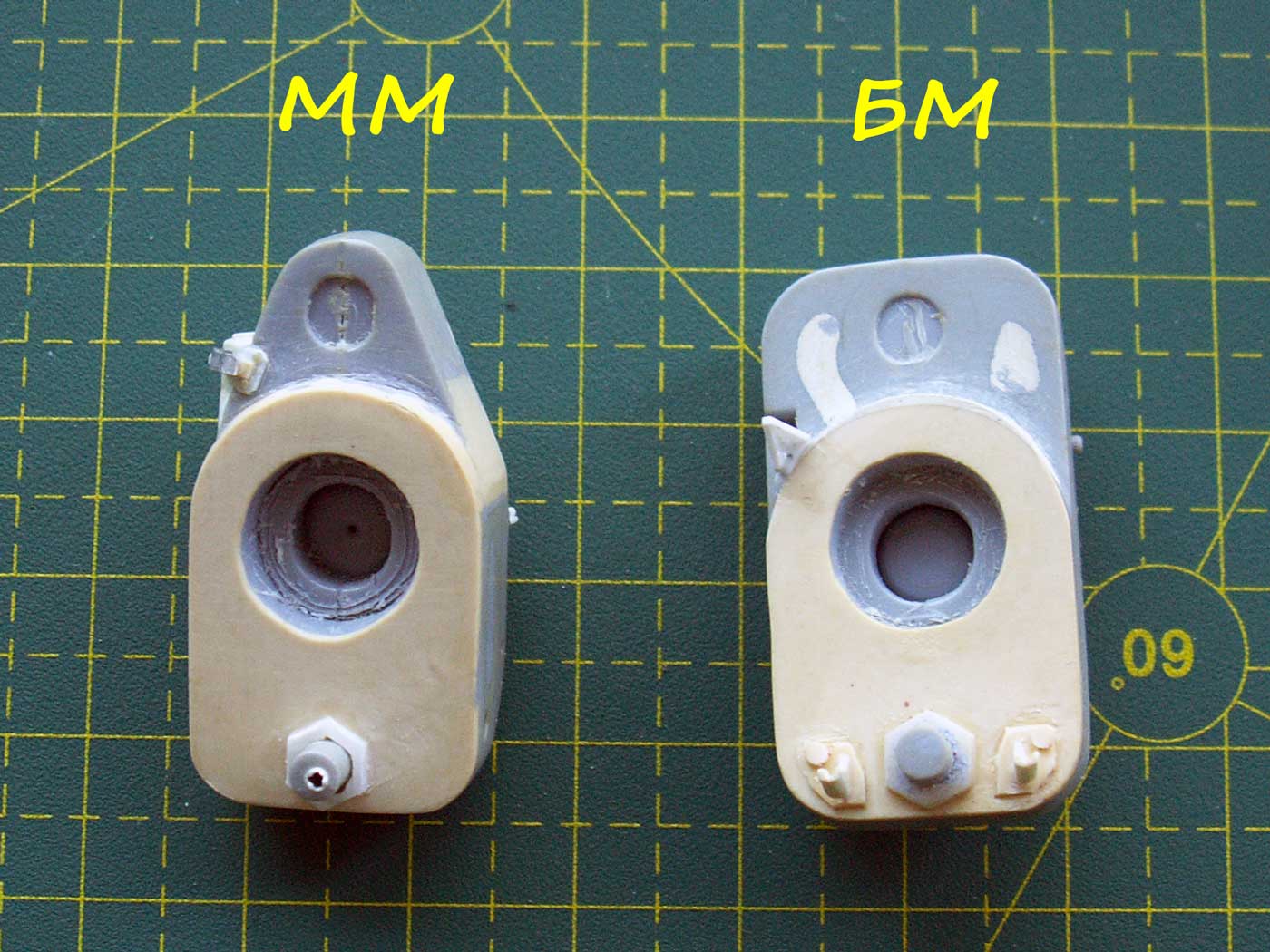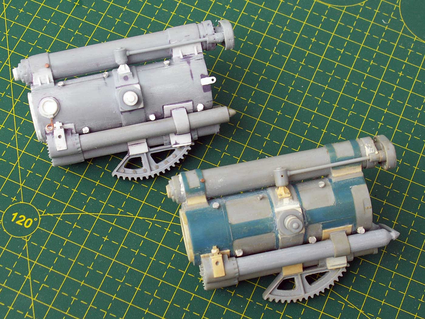 1. Казенная часть для двух орудий - зашпаклевано все, что можно было зашпаклевать, откорректирована форма, добавлен механизм выстрела, сделан трехтактный затвор на ММ, крюки для троса на БМ, всякие технологические отверстия