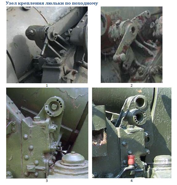 Сектор люльки на орудиях первой серии был литой, позже он делался из дух деталей сваркой и состоял из основания и обода сектора. Сектор собранный на болтах есть на орудии стоящем в Переслав-Хмельницкий, больше вроде бы не попадался.