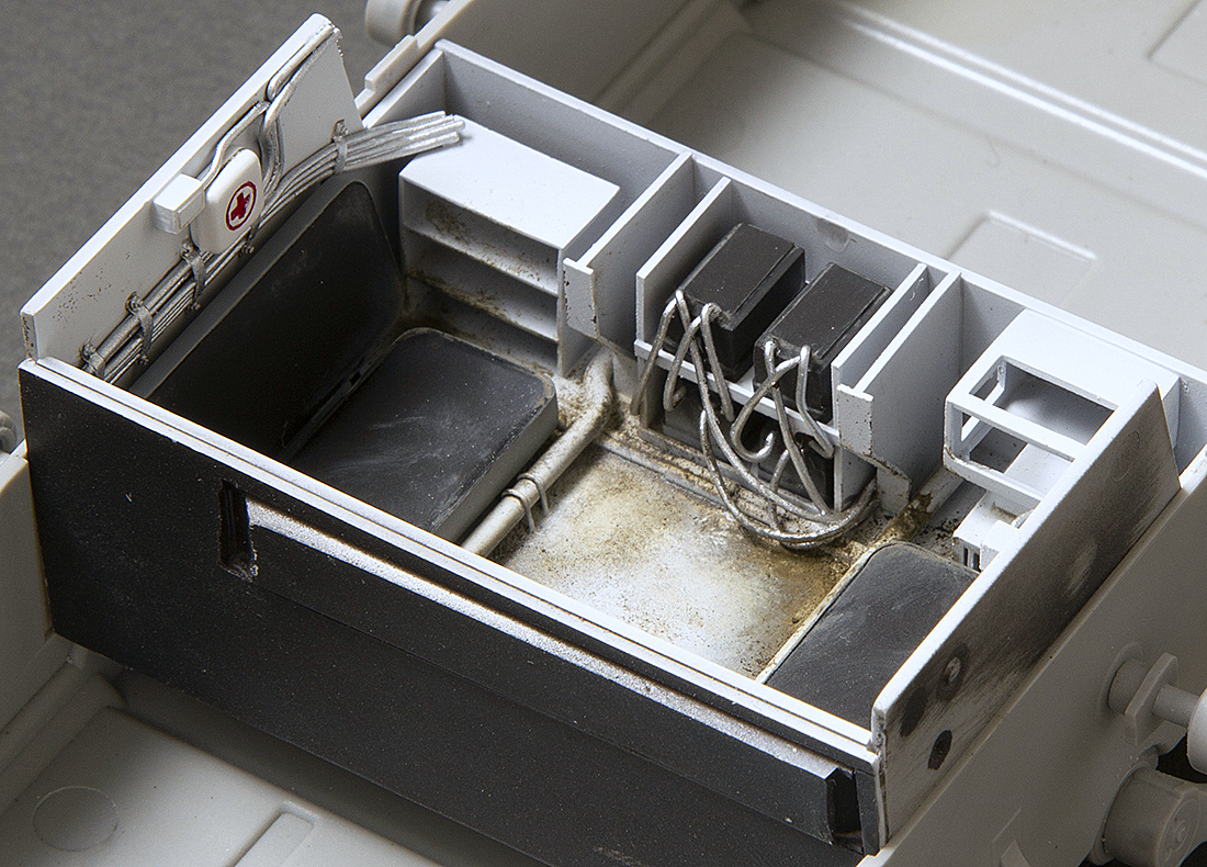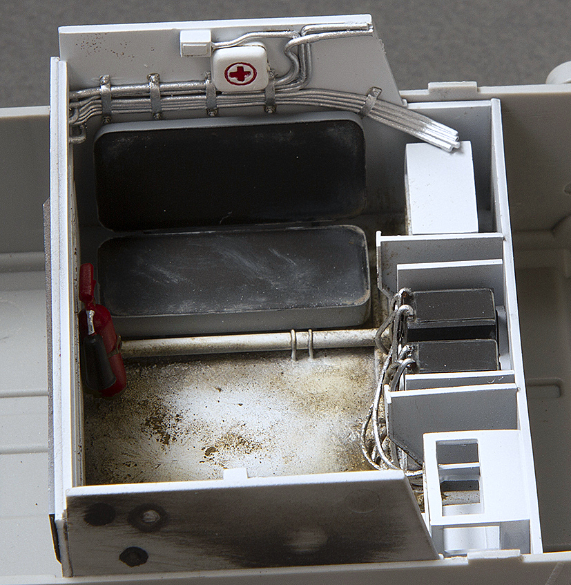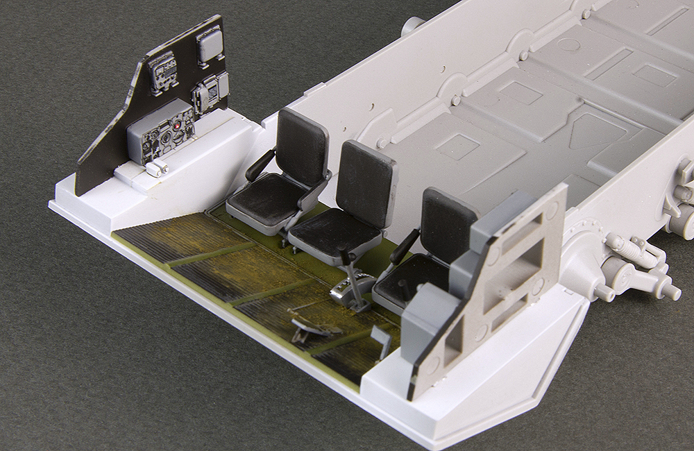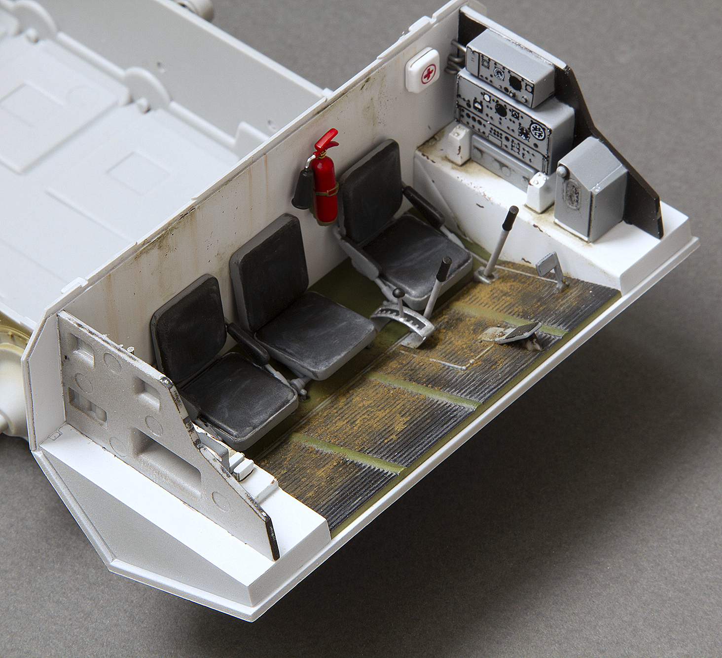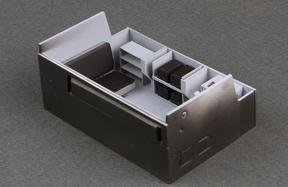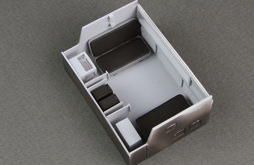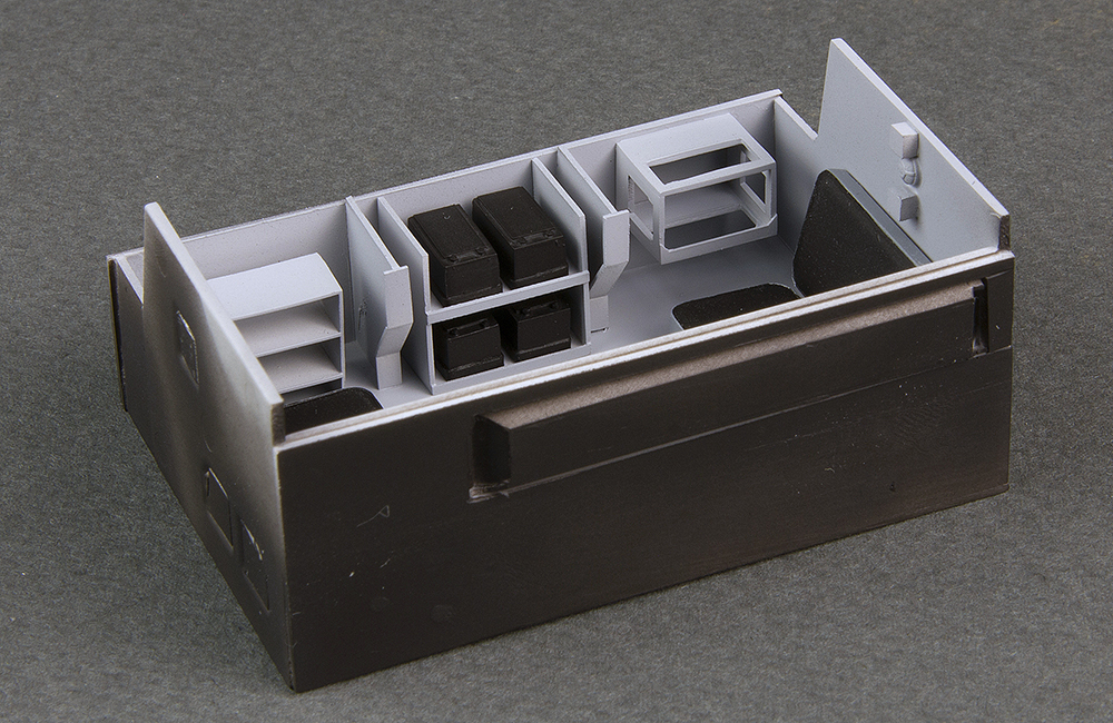 Прогресс на сегодняшний день. Я, наконец-то, закончил с интерьером. Получилось весьма условно, тем не менее, лучше, чем было в базе у "Trumpeter". И со спокойной душой я склеил две половинки корпуса, а также закрыл кабину. С одной стороны, немножко жаль, что не было возможности заказать такую печать, которую я показывал по ссылке выше, с другой - вот прикрыл и увидел, что ничего не увидел     Визуально различима оказалась только проводка и вентиляторы с аптечками под самой крышей (последние мне напечатали)