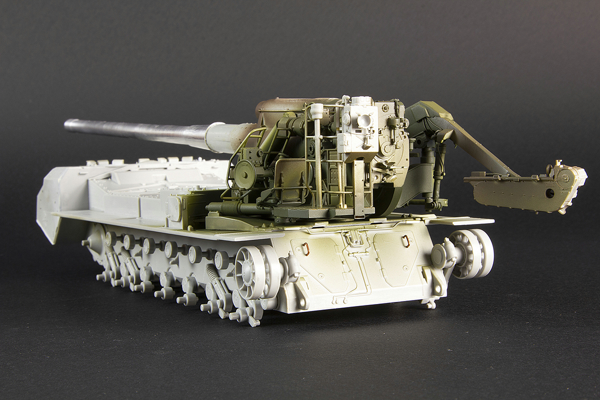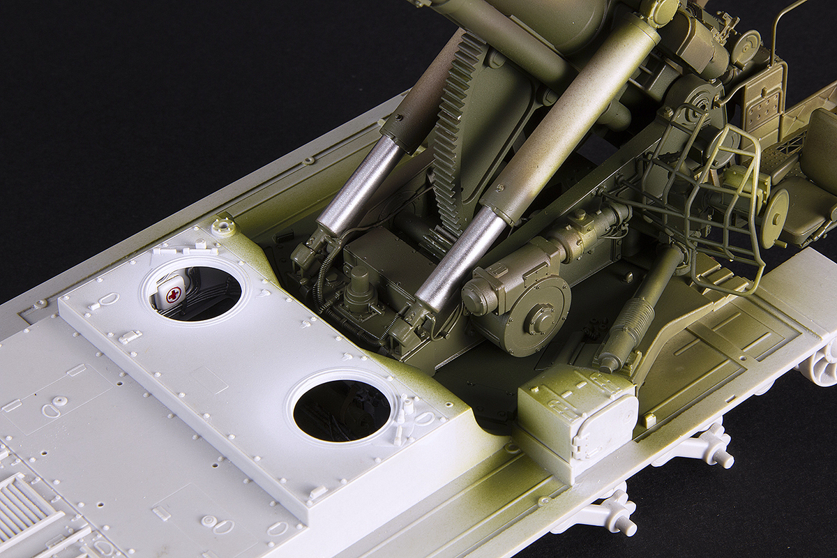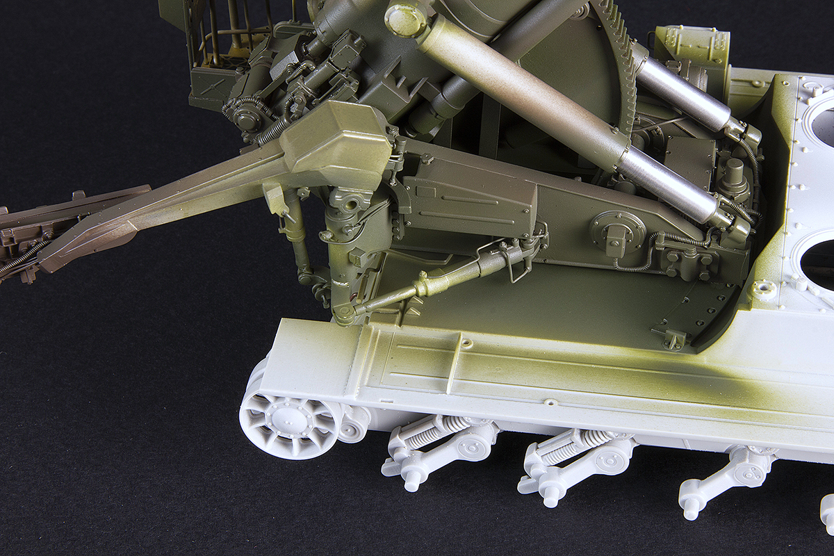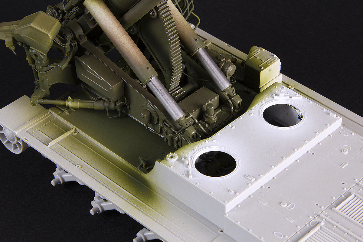 Предварительно я загрунтовал и покрасил в темный защитный цвет все места, куда после монтажа орудия аэрографом будет просто не добраться - не люблю непрокрасы =)