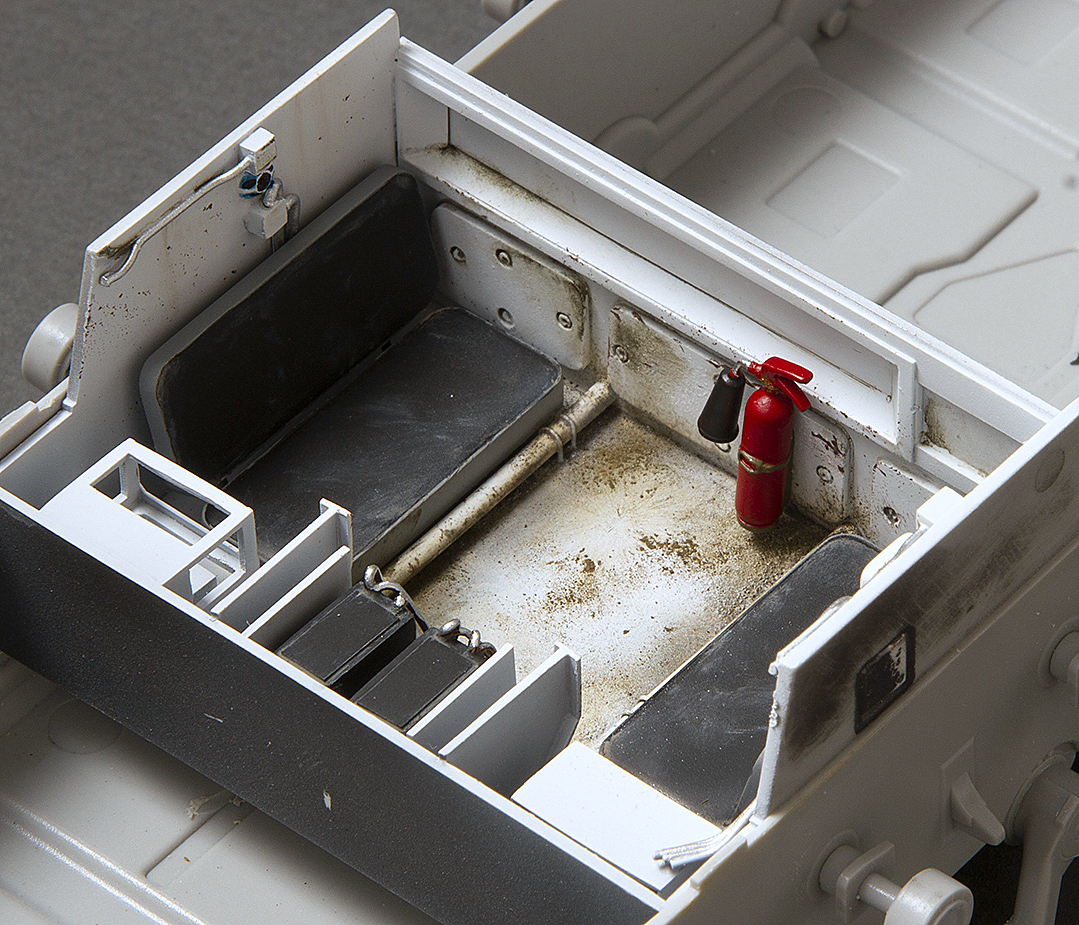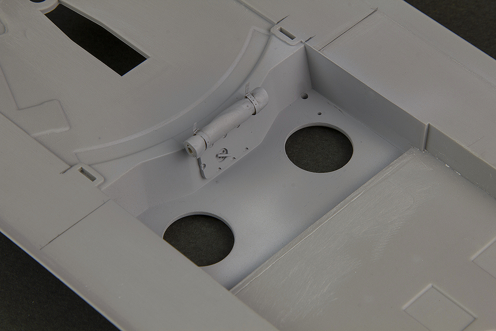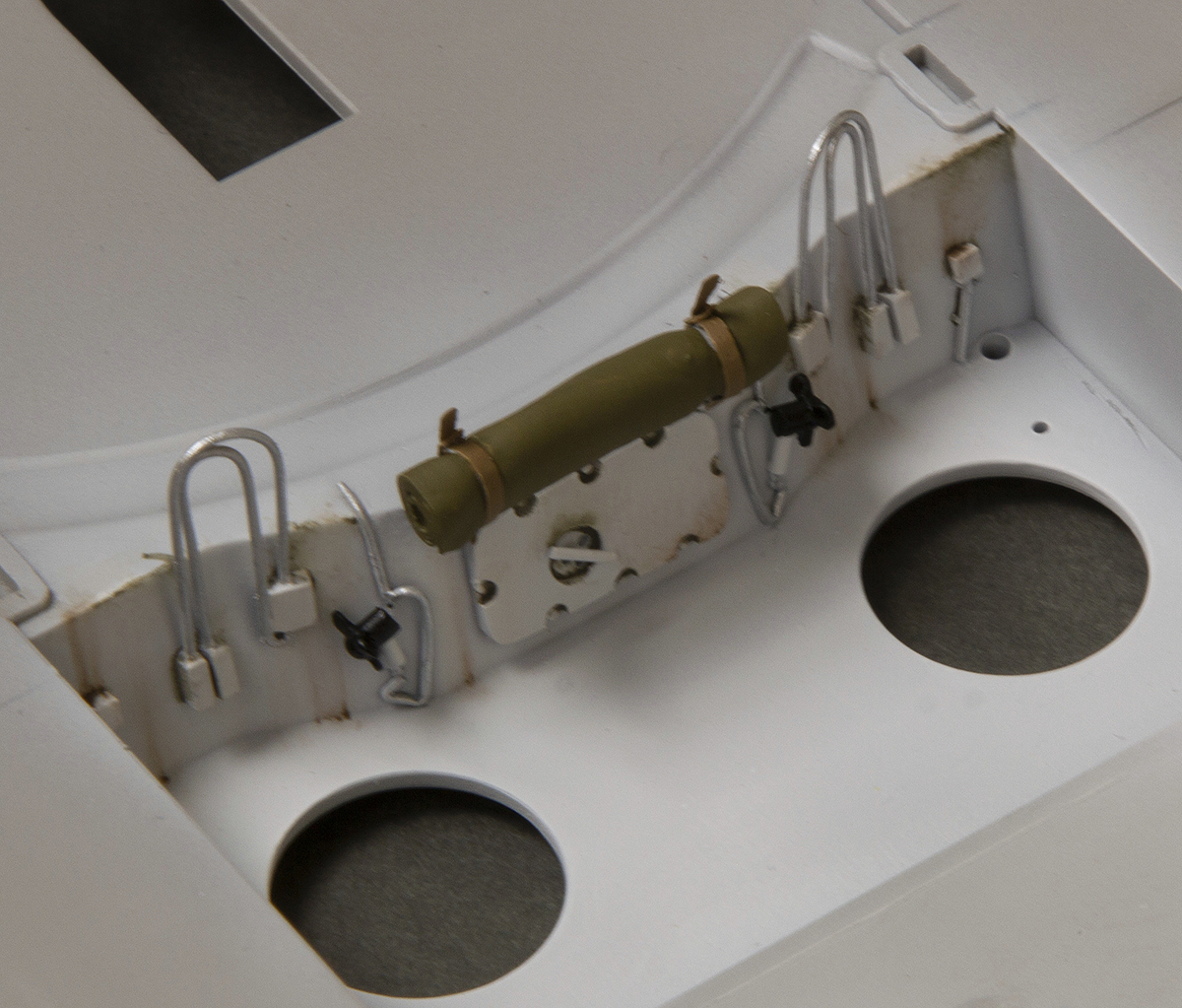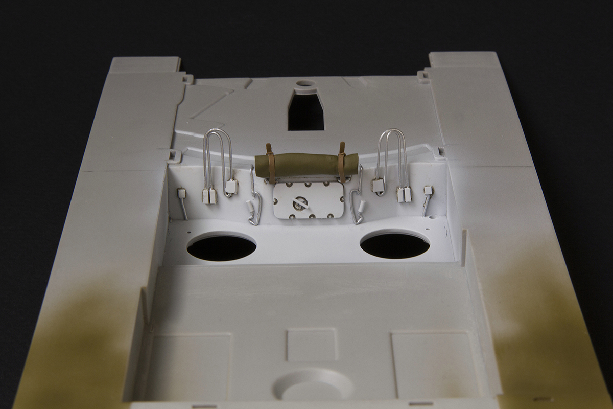 Предварительно я загрунтовал и покрасил в темный защитный цвет все места, куда после монтажа орудия аэрографом будет просто не добраться - не люблю непрокрасы =)