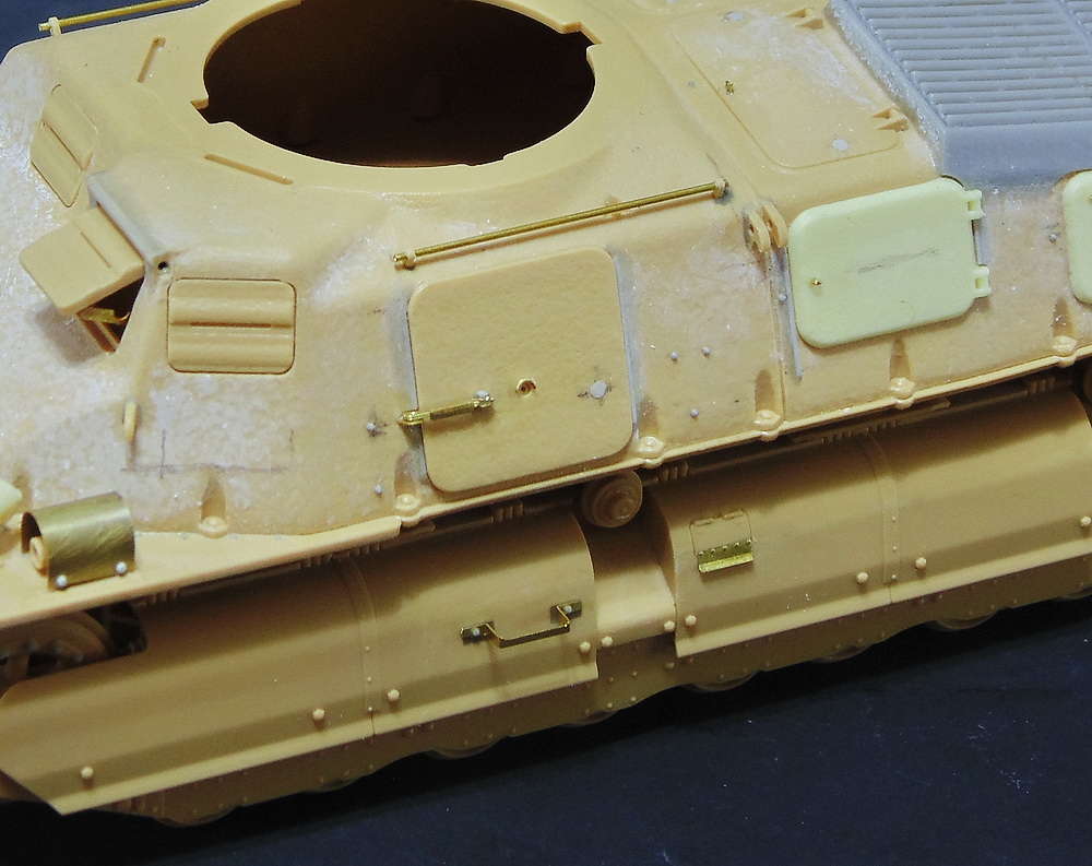 Присутствуют смоляные над моторные решетки - Model Accessories , набор смоляных допов - Mr/Modellbau D 38690 ( на картинке другой номер , но элементы все те же ) и металлические траки Master Clab .