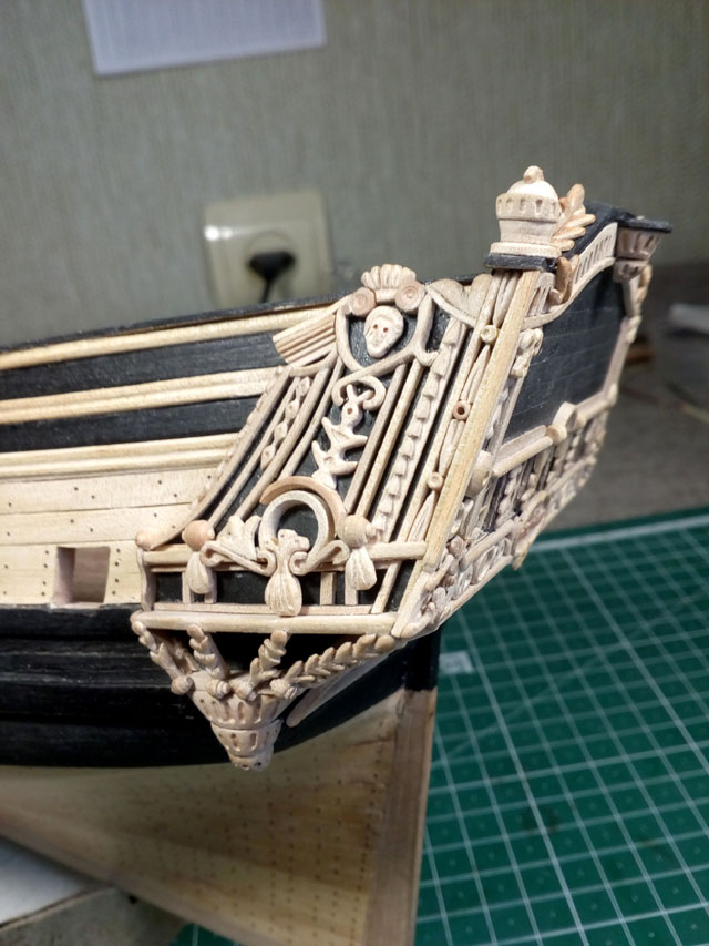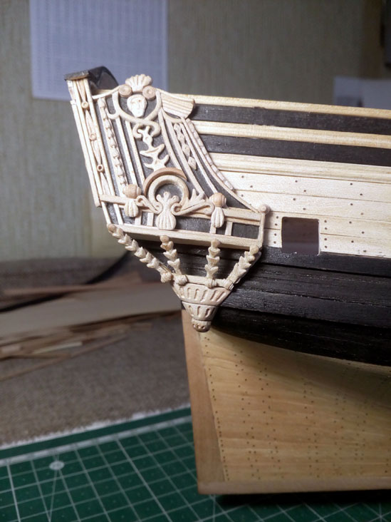 @Игорь Тараканов написал:А гакабортное украшение (панно) можно сделать из отдельных элементов - так будет вам удобней, и, кстати, достовернее - ведь именно так и делали мастера-краснодеревщики в те времена декор кораблей.