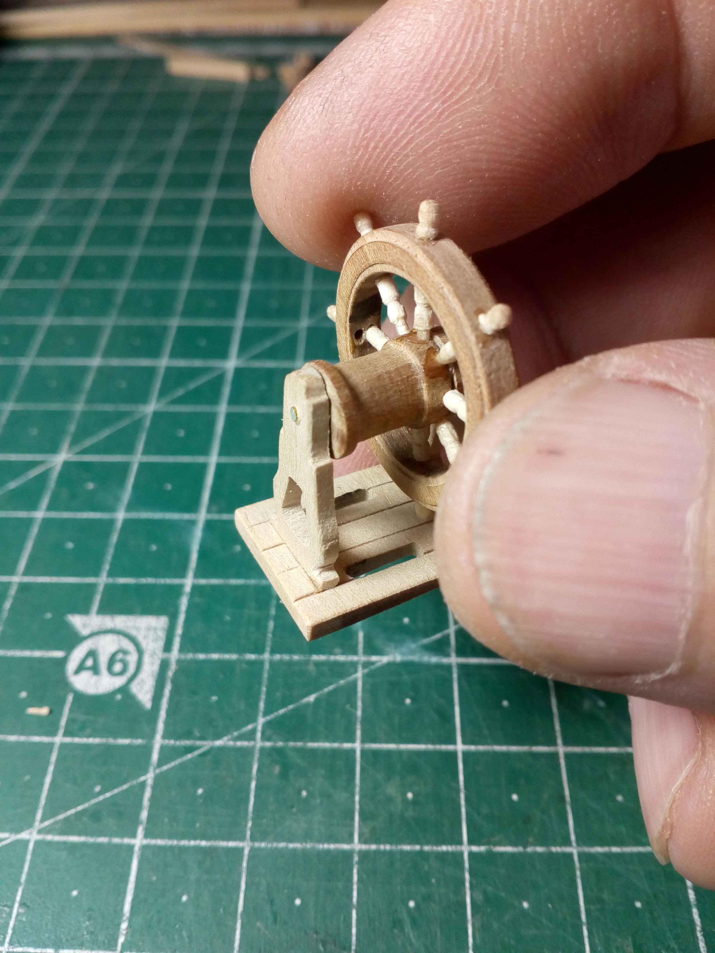 Чрезмерная не понятно почему возникшая толщина штурвала, это, увы, Володя, ваша ошибка, и на этот раз грубая и издалека заметная. Абсолютно зря, Володя, ты не доверился чертежу.  Тот самый случай, когда чертёж от Анкрэ более чем правильный и не врёт совершенно.