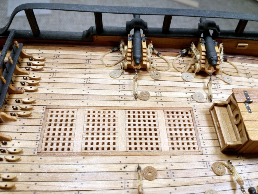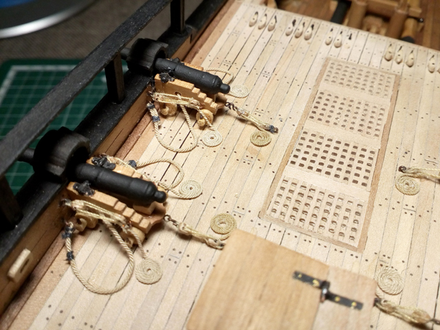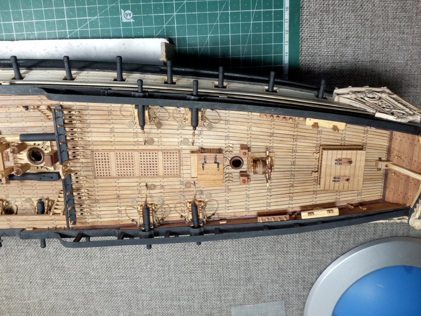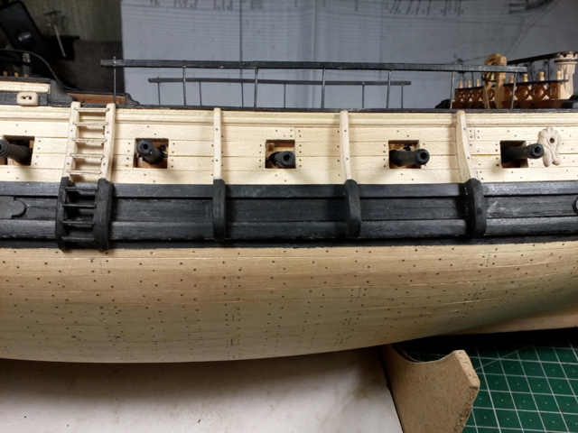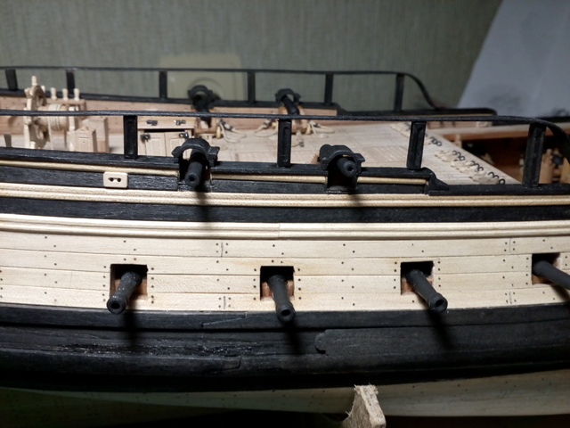 Пушечные пробки, руслени, шпигаты и пр - это предстоящая работа по бортам.