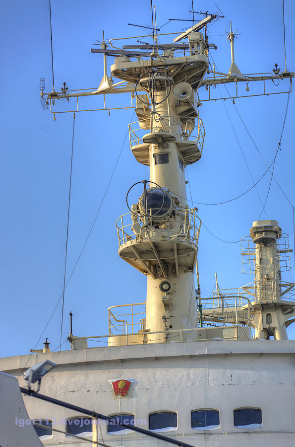 Здравствуйте, коллеги. Спешу поделиться некоторым прогрессом по стройке ледокола. Доработал и установил переднюю мачту, осталось установить несколько элементов и она будет готова окончательно. Ориентировался на фотографии этого элемента, когда уже корабль был музеем.