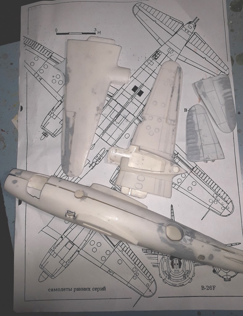 Так как решил собрать Б-26 всех доступных фирм - решил собрать и модель от ФРОГа. . Для начала сравнил геометрию с лучшими - Хасегавой и Аирфиксом. все оказалось не смертально - перенести почти все вырезы в фюзеляже , перенести фары ,доработать элероны, киль, мотогондолы, , Изготовить новые стабилизаторы., стойки шасси и всю мелочевку. Самолет будет иметь французскую окраску. Если кто поделится родным фроговским вариантом - буду благодарен. Не найду - подберу из обрезков или закажу у "народной декали".