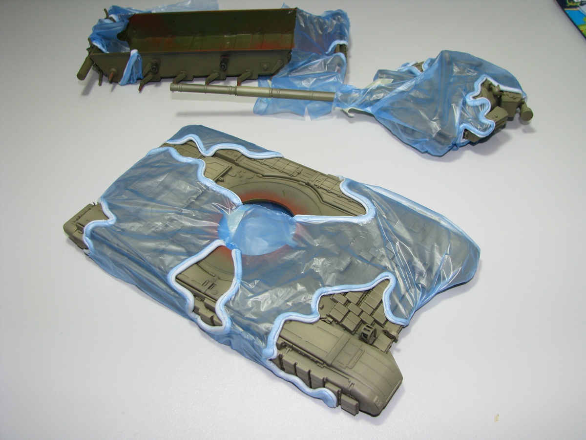 Модельный скотч по контурам, а большие поверхности (что бы модельный не переводить) автомобильным eurocel msk 6268. Он не сильно цепкий, так что краску не сдирает. Но толстый, так что в полной мере модельный не заменит.