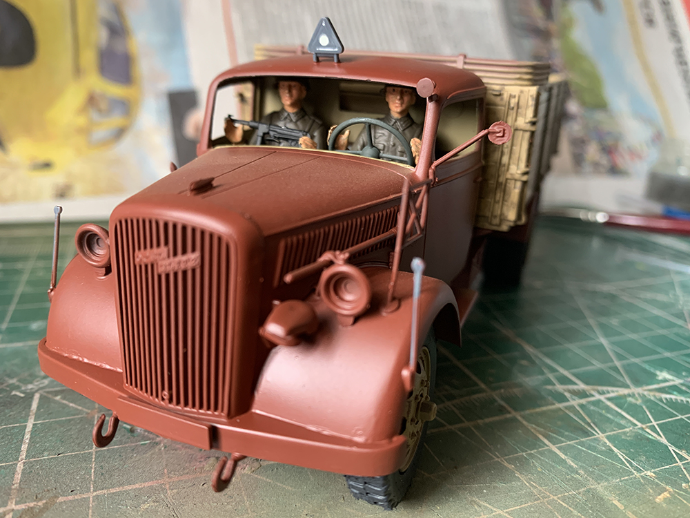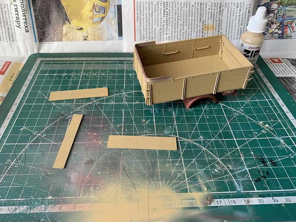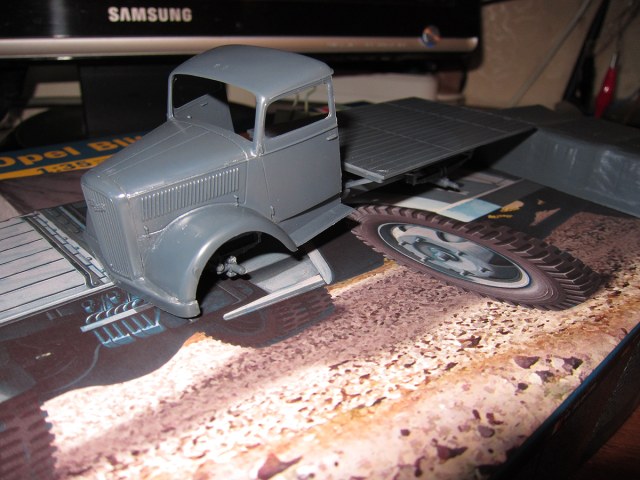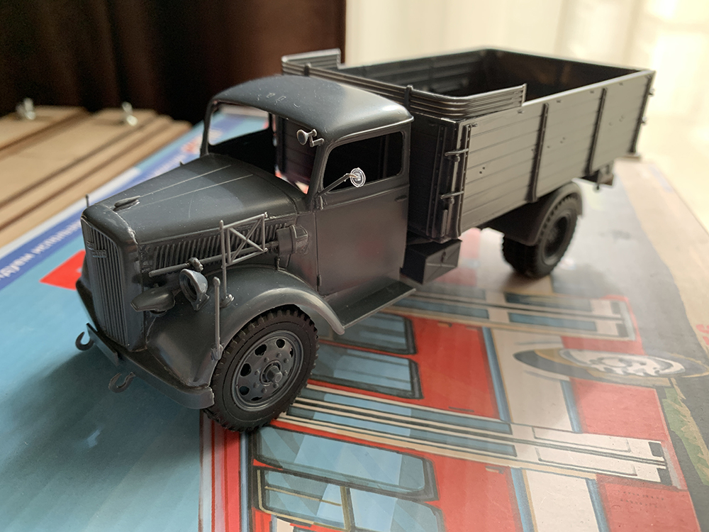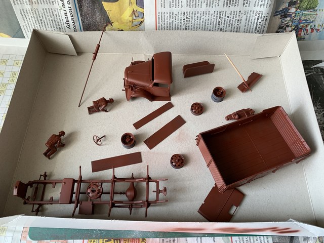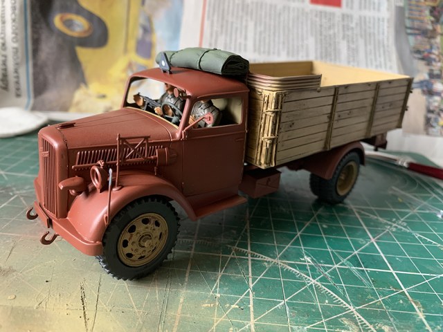Приветствую) Просто рутина...,но потом примерочка) Ну чтобы прям "дровищи" я бы не сказал-конечно видно,что набор староват,но худо-бедно стыкуется и собирается. Насчет прототипа наверное еще подумаю и покурю тему верхматовской окраски,с эмблемой кисика (?) приглянулся (эмблема батальона?) Вот тент просто как колпак накрывается,надо направляющие сделать,чтобы держался без клея.