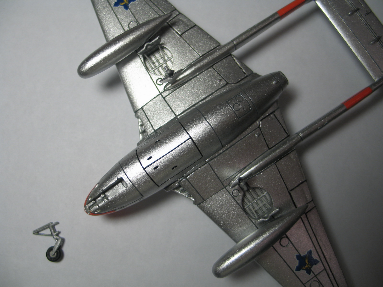 К сожалению, подсветка кабины на носу сквозь окрашенные борта просвечивать умудряется - этакая творческая неудача. Не думал, что свет сквозь серебрянку будет пробивать.