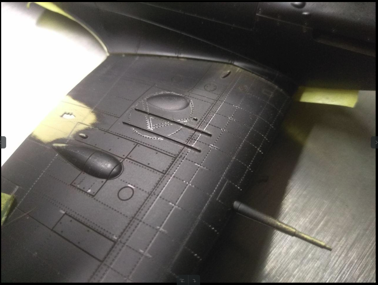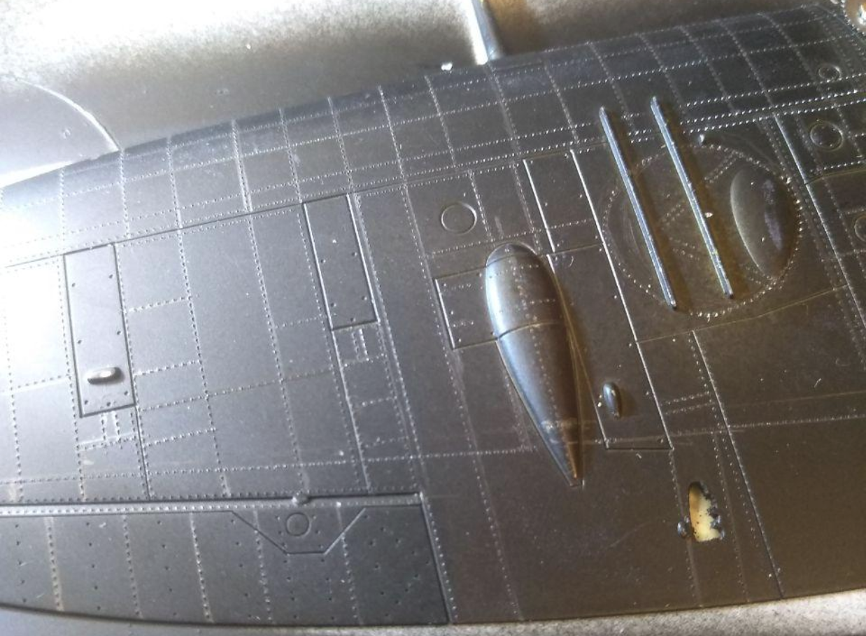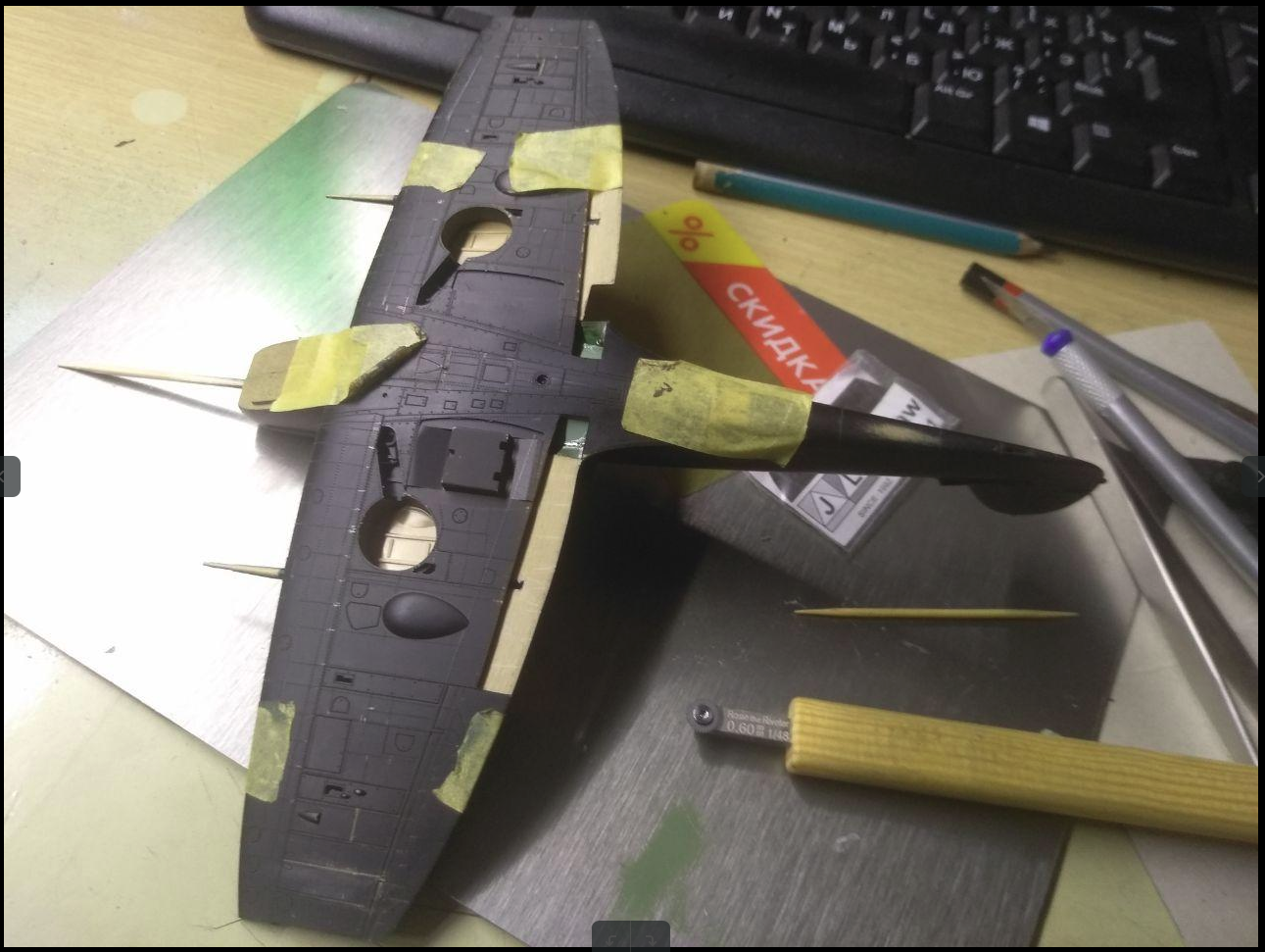 Коллеги здравствуйте. Начал расклепывать Spitfire. В этот раз сильно не нажимаю ( учитывая опыт с Corsair), и проклепываю по грунту.