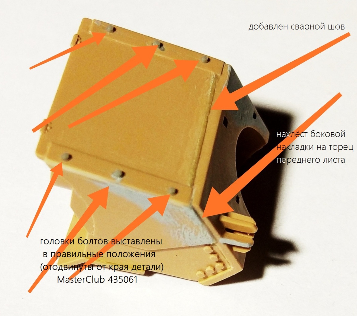 Здесь же: головки болтов непропорционально малы и расположены слишком близко к краю - сверился с фотографиями, удалил, разметил заново, применил смоляные болтики от МастерКлаб.