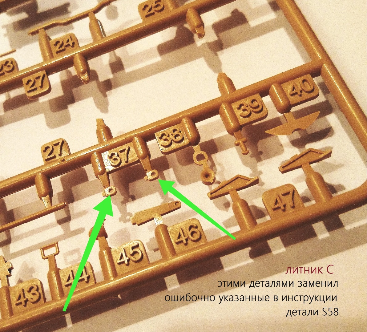 Чертыхаюсь, беру листовой пластик, начинаю колдовать, и - о чудо! совершенно случайно обнаруживаю на литниках С две пары аналогичных деталей под номерами С37 !