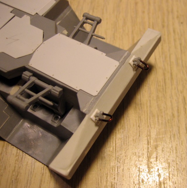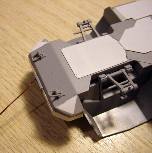 Сделал буксирные петли, спереди и сзади. Передние то были, но не рабочие, а вот сзади было прицепное и буфера, которые удалил. Сделал ПОЧТИ такие же как спереди.