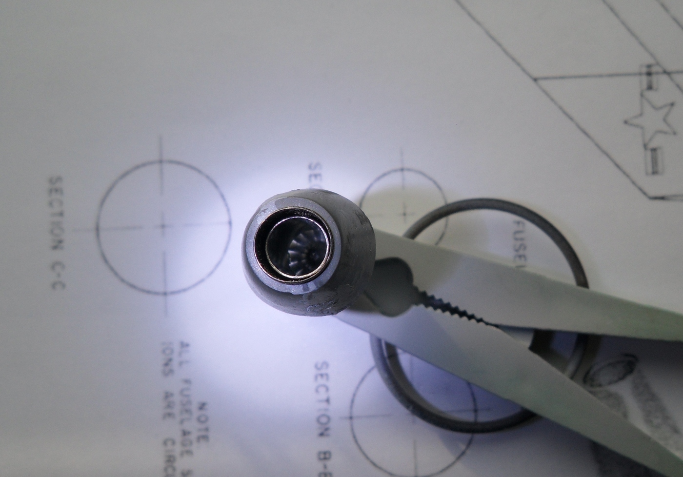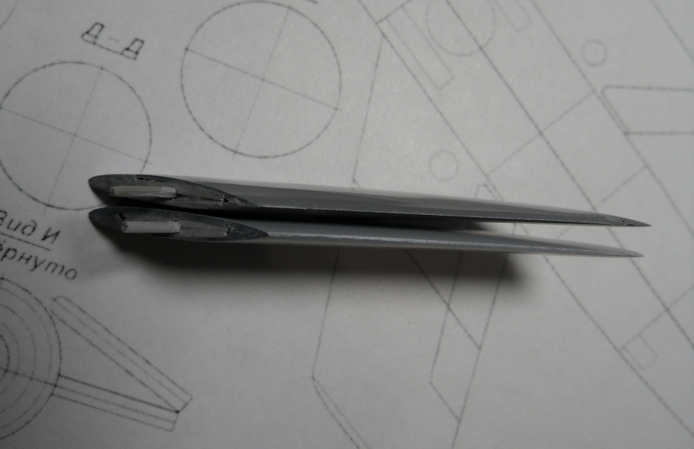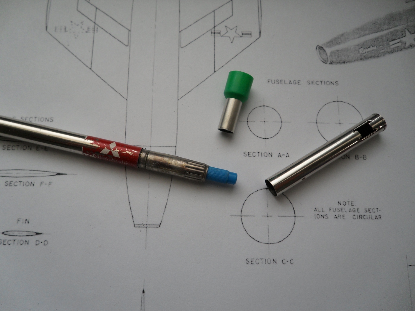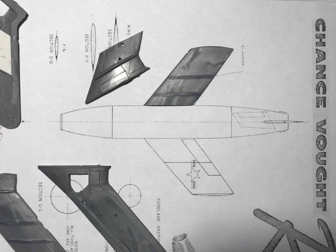 Зашкурил корпус, просверлил отверстия для штифтов, крепление крыльев и киля, отмасштабировал и распечатал чертежи из МК, они более подробны...