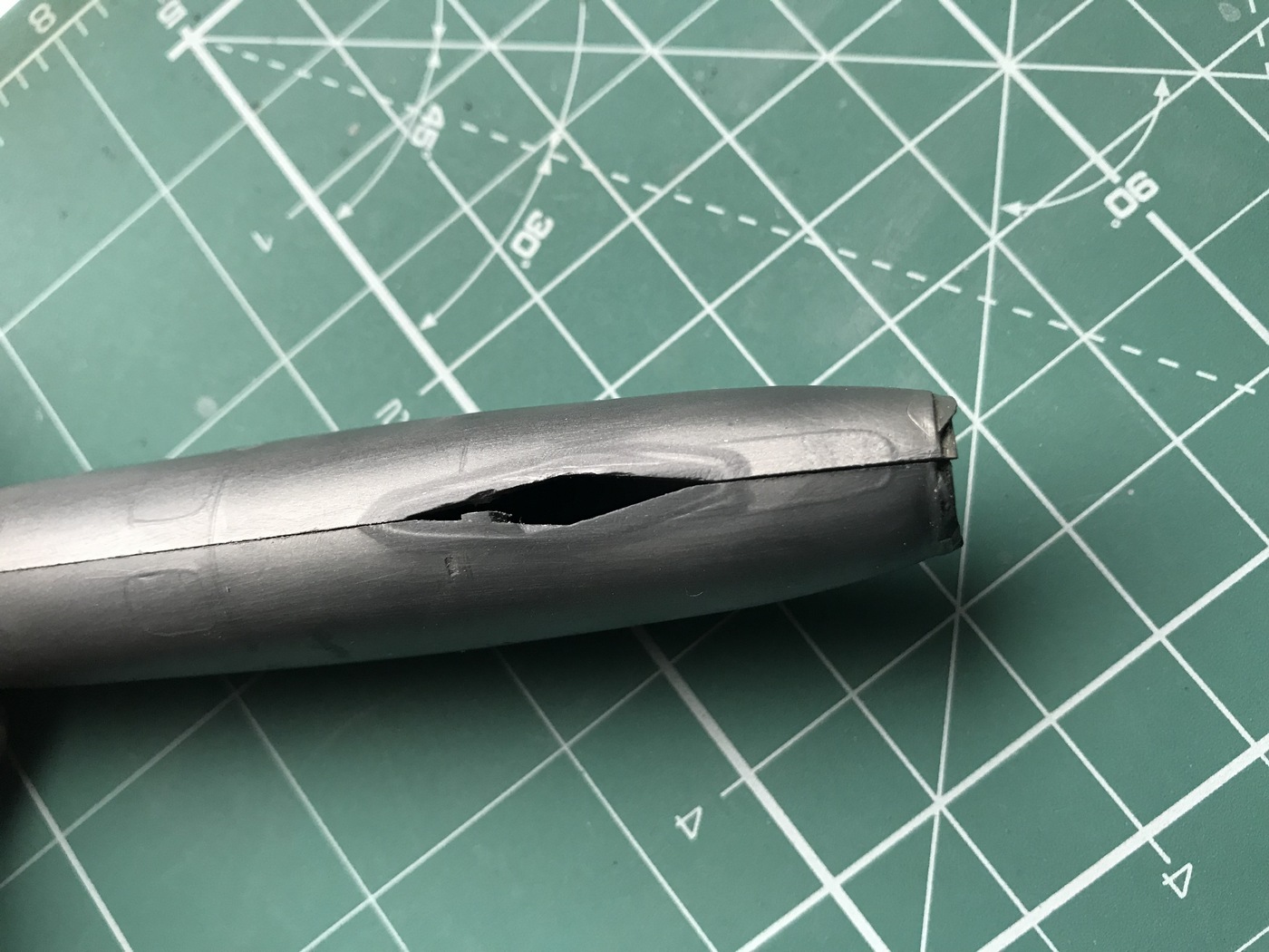 Из металлической ручки, сделал канал ВЗ и сформировал носовую часть... пока все выглядит коряво, позже придам нормальную форму, с помощью напильника и наждачки